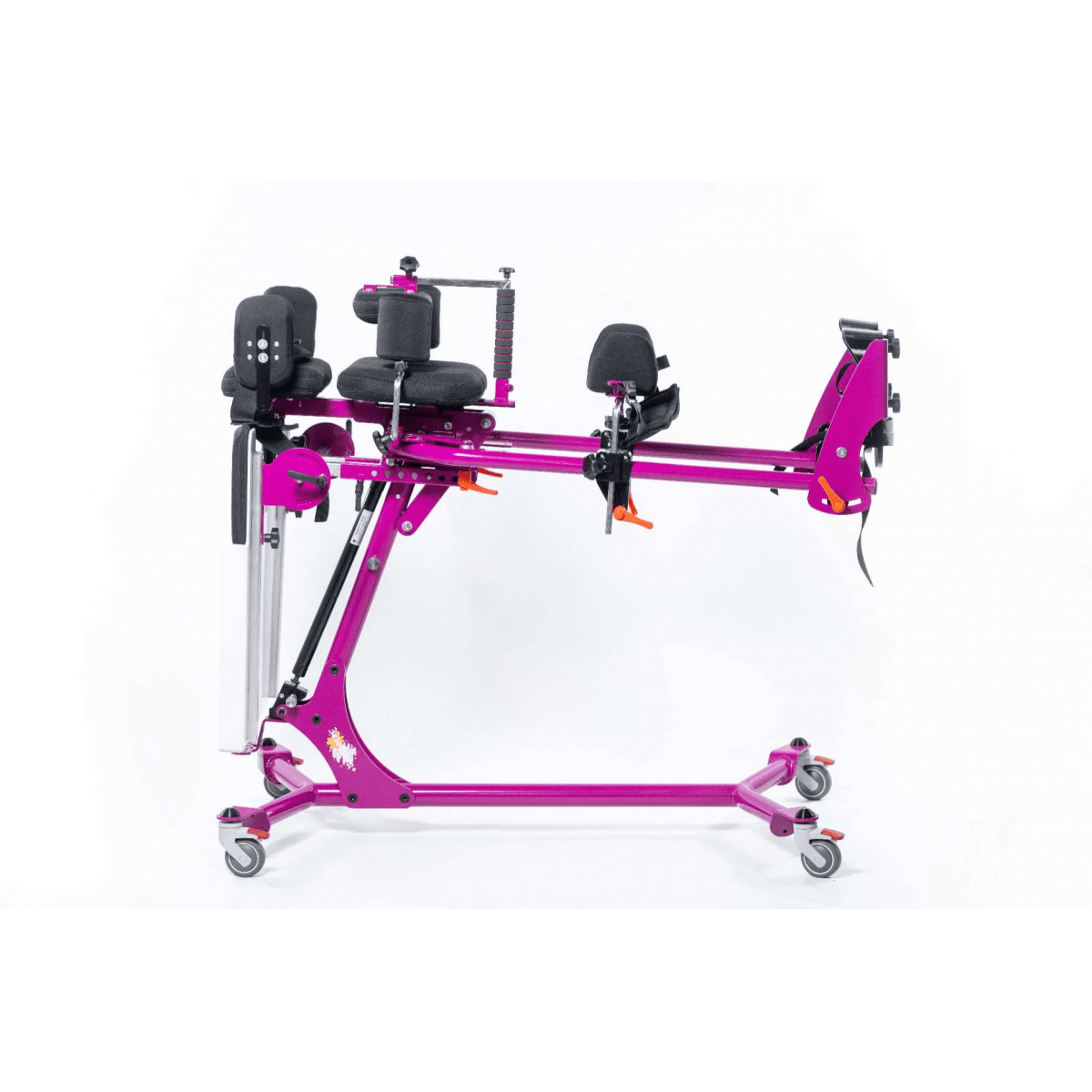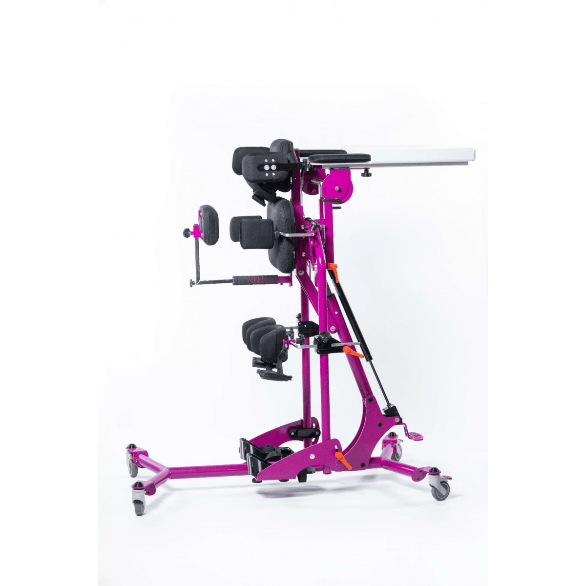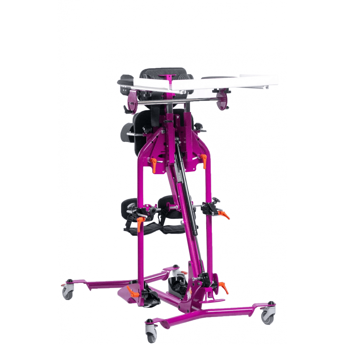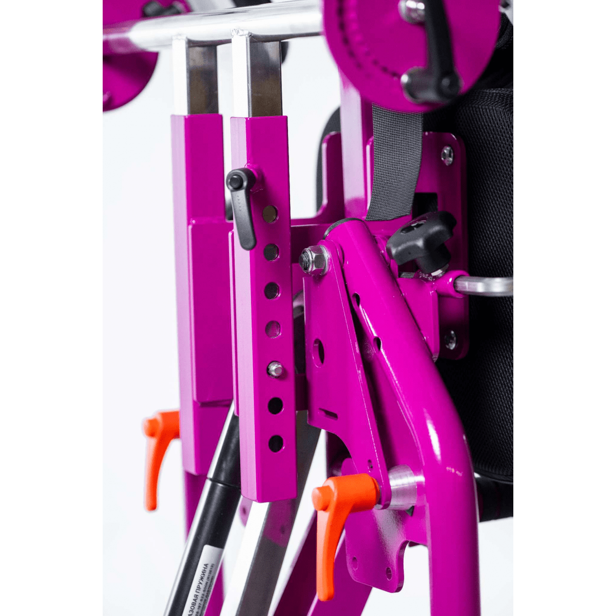 Особенностью вертикализатора является система изолированного разведения ног, позволяющая установить физиологически правильное положение нижних конечностей до 30 градусов. Это делает реабилитацию более эффективной и комфортной. Устройство подходит для регулярного использования и помогает постепенно улучшать двигательные возможности.