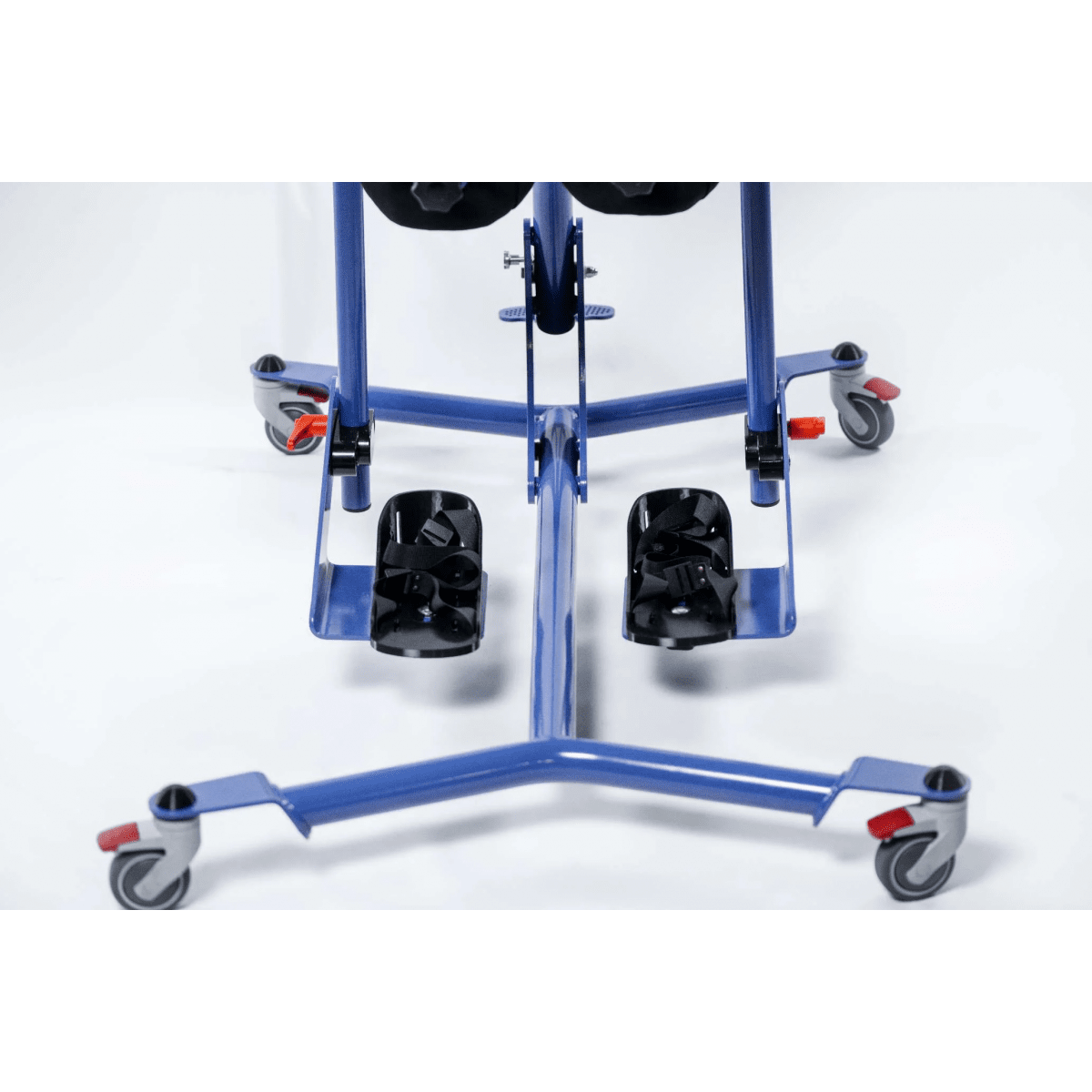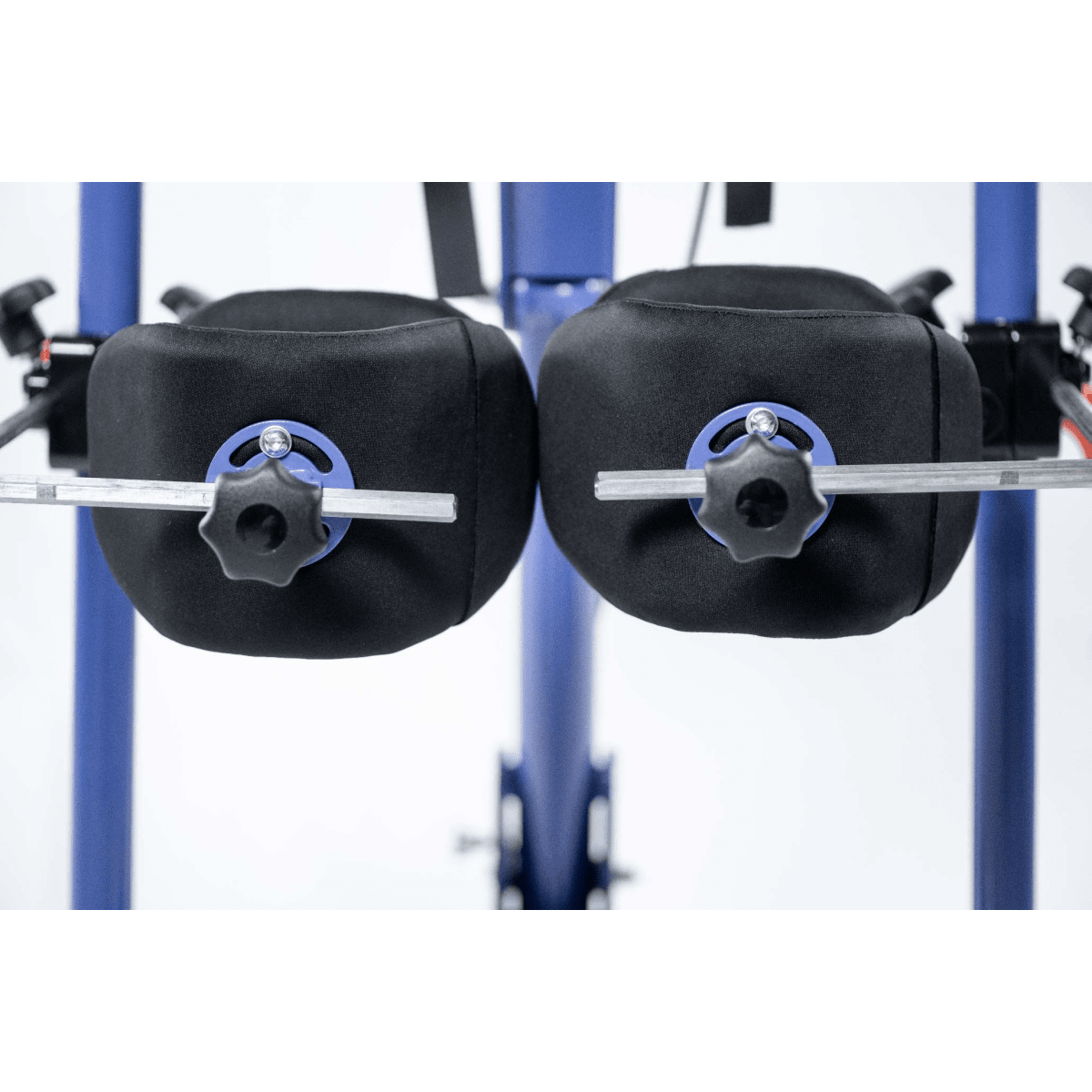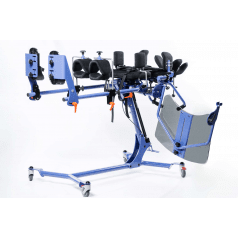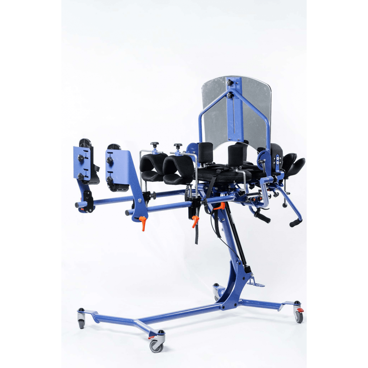 Особенностью вертикализатора является уникальная система изолированного разведения ног, обеспечивающая коррекцию положения каждой конечности до 30°. Это делает ЭкзоСтенд незаменимым при работе с дисплазией тазобедренных суставов и другими ортопедическими нарушениями. Конструкция сочетает надёжность, точную настройку и комфорт для пользователя, обеспечивая эффективную реабилитацию.