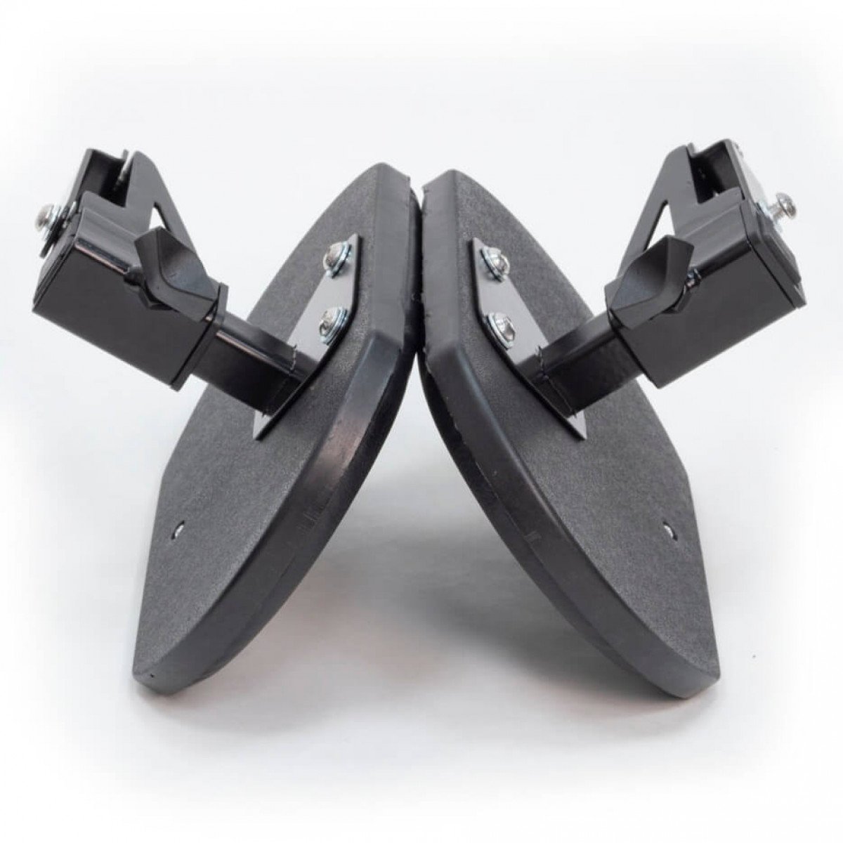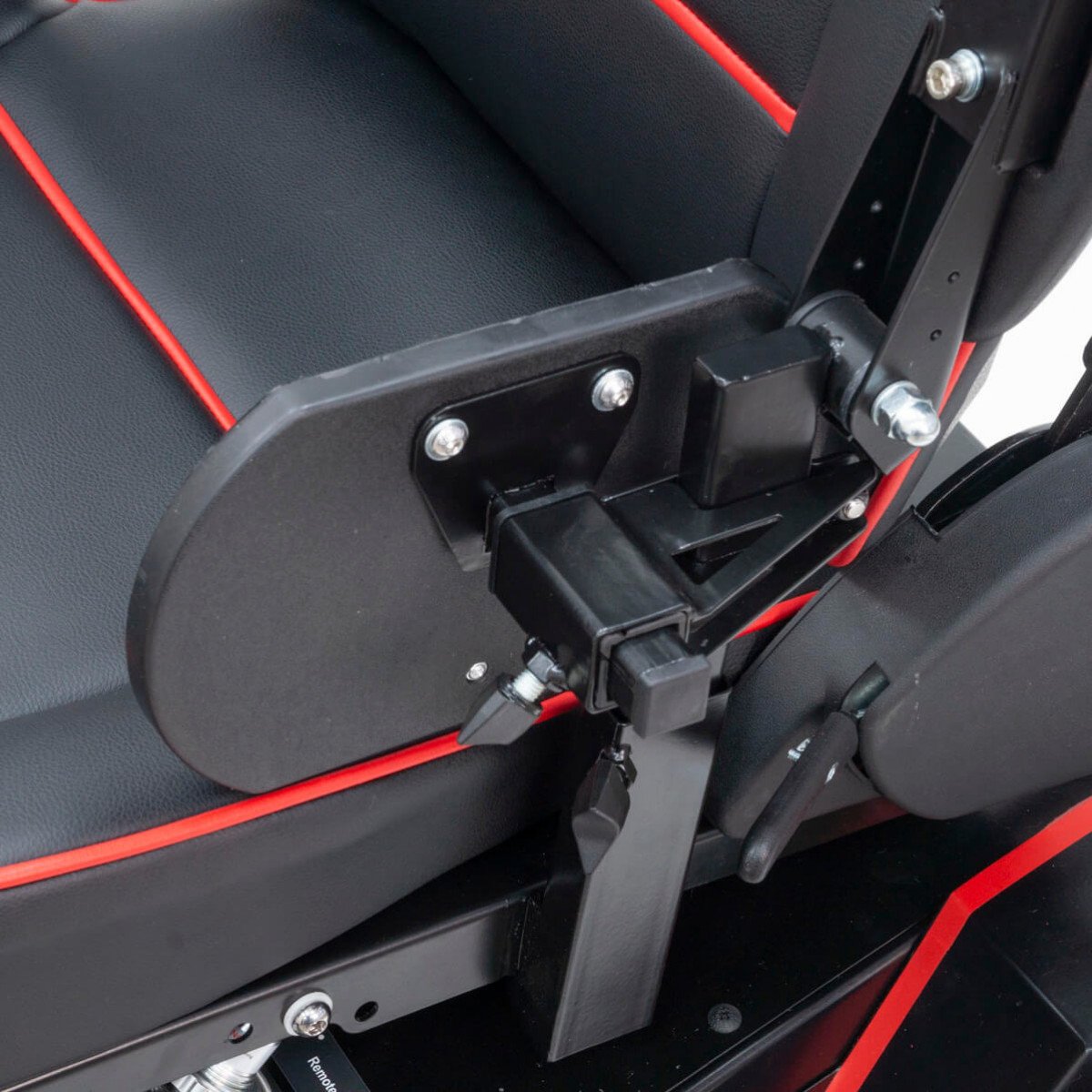 Подушки поддержек имеют пластиковый каркас с одной стороны и мягкую вставку обшитую экокожей с другой. Подушки установлены на штангах для регулировки ширины. Направляющие для подушек крепятся на стойки подлокотников. При пересаживании подлокотник можно вытащить вместе с поддержкой.