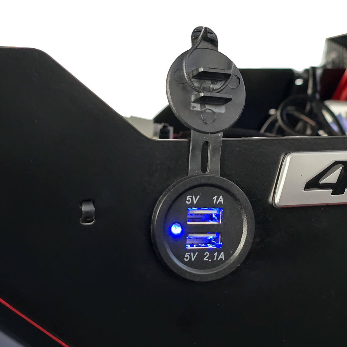 На моделях Ultra (4, 5, 4WD, 4WD Lift, 4WD Lux) USB розетки устанавливаются сбоку на крыле. На ступенькоходных моделях GTS (3, 4, 5, 6, 4WD, 5 Lux, 4WD Lux) USB устанавливается под сиденьем. Данная опция может быть установлена только производителем