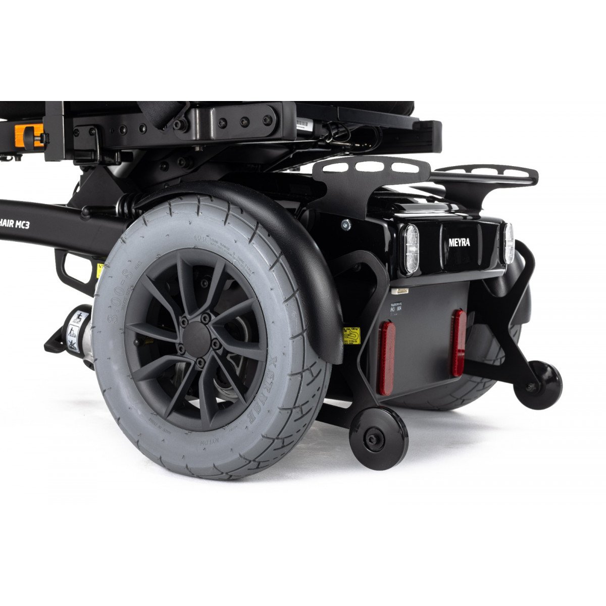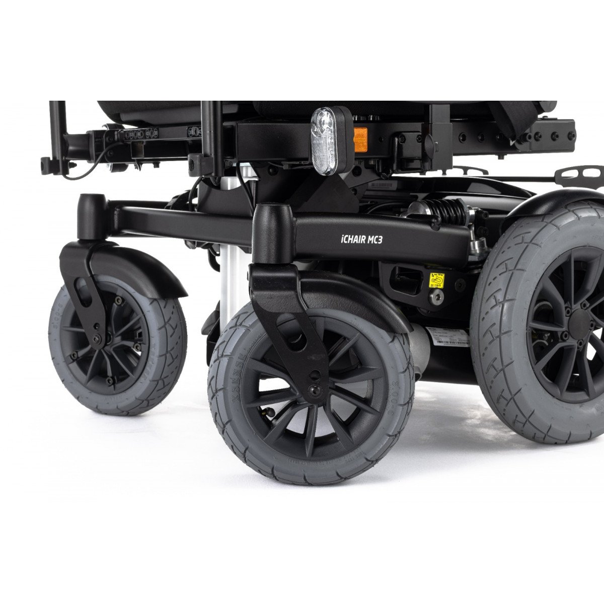 Коляска оснащена полной амортизацией рамы, а также задней подвеской, что значительно повышает комфорт во время поездок по различным типам местности. Новая система монтажа вилок передних колёс также способствует улучшению управляемости и устойчивости. Компактные размеры коляски вместе с интегрированными роликами-антиопрокидывателями обеспечивают лёгкость передвижения даже в стеснённых условиях. Модель iChair MC3 также предлагает опциональный электрический лифт, который поднимает сиденье на 30 см.