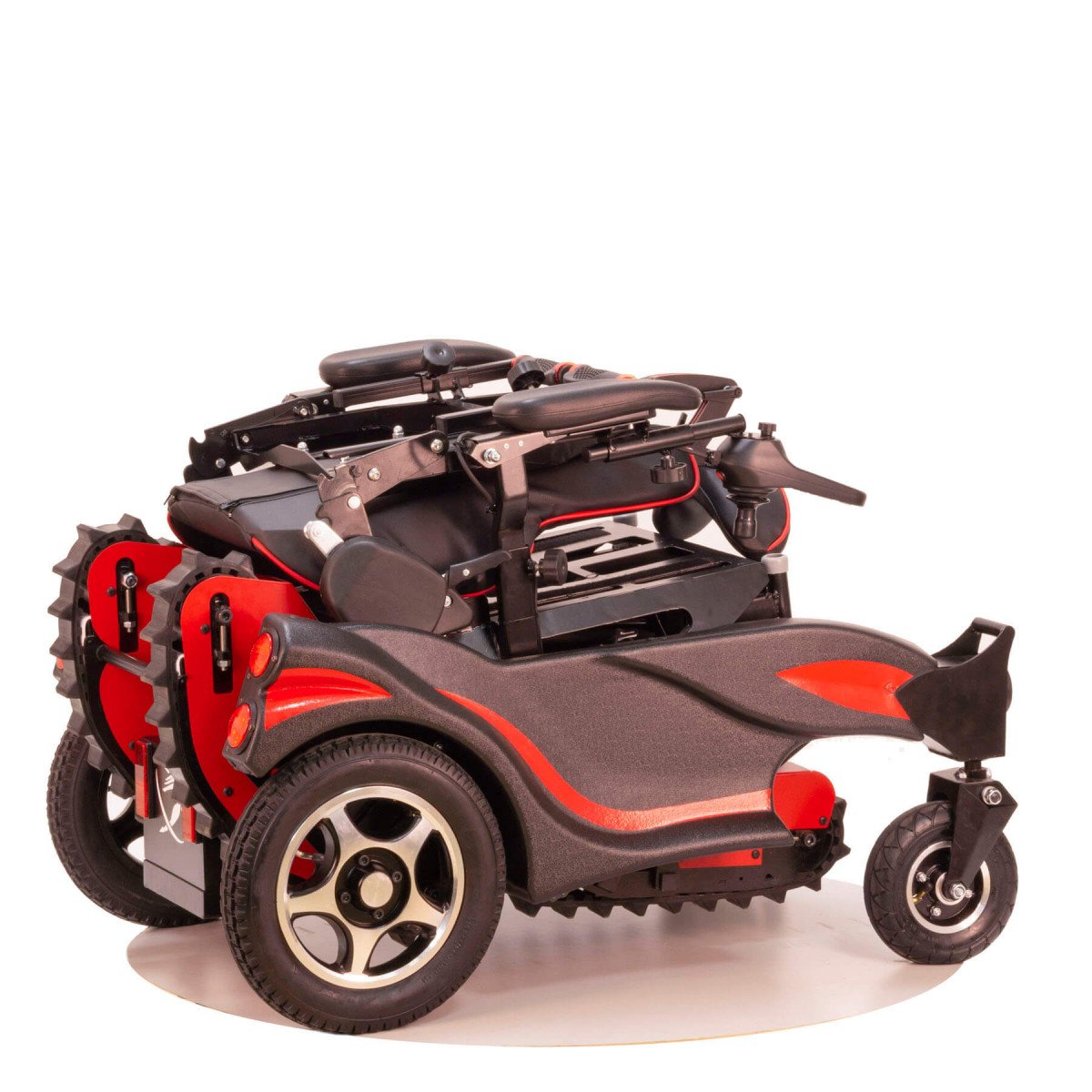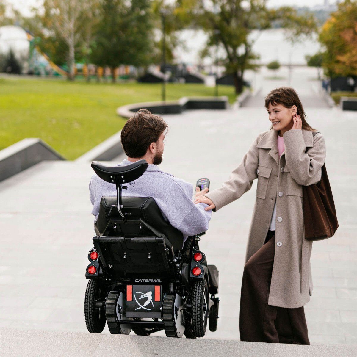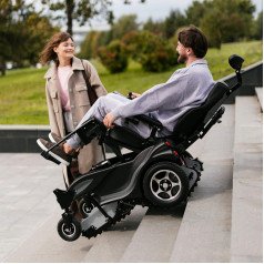 Инвалидная коляска Caterwil GTS5 (Катервил ДжиТС5) — это ступенькоход нового поколения, созданный для уверенного передвижения в городской среде. Благодаря сочетанию колёсного и гусеничного привода, коляска с лёгкостью преодолевает лестницы до 20 см, бордюры и другие препятствия. Колёсный режим используется для движения по ровным поверхностям, а гусеничный — для сложных участков. Пневматические колёса подходят для лёгкого бездорожья, а компактные габариты делают модель удобной в быту и при транспортировке.