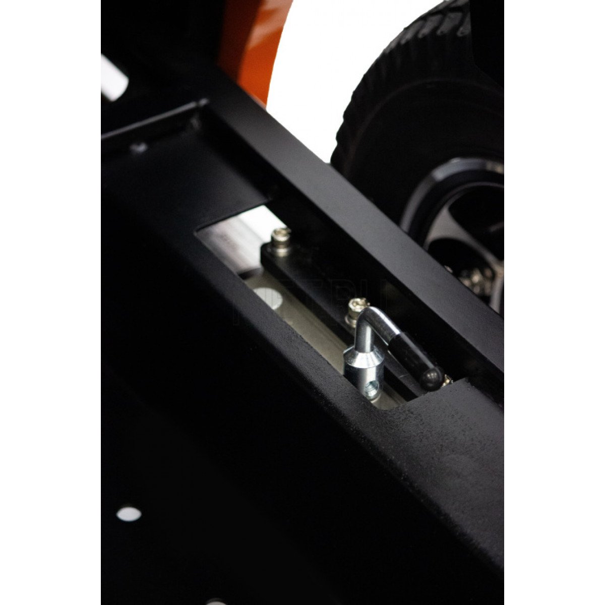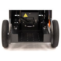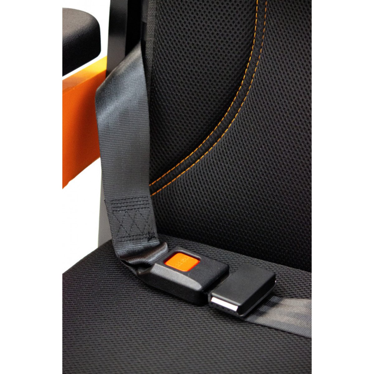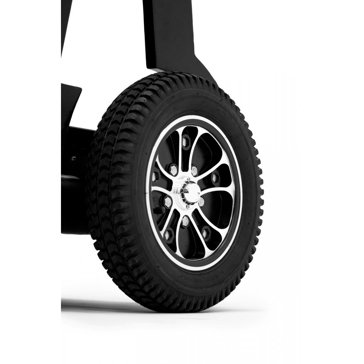 Управление электрической коляской осуществляется сопровождающим, стоящим на специальной платформе позади коляски. Пульт управления (джойстик) удобно расположен на регулируемой по высоте опоре. Коляска оснащена ремнем безопасности для пассажира, а также полкой для перевозки ручной клади.