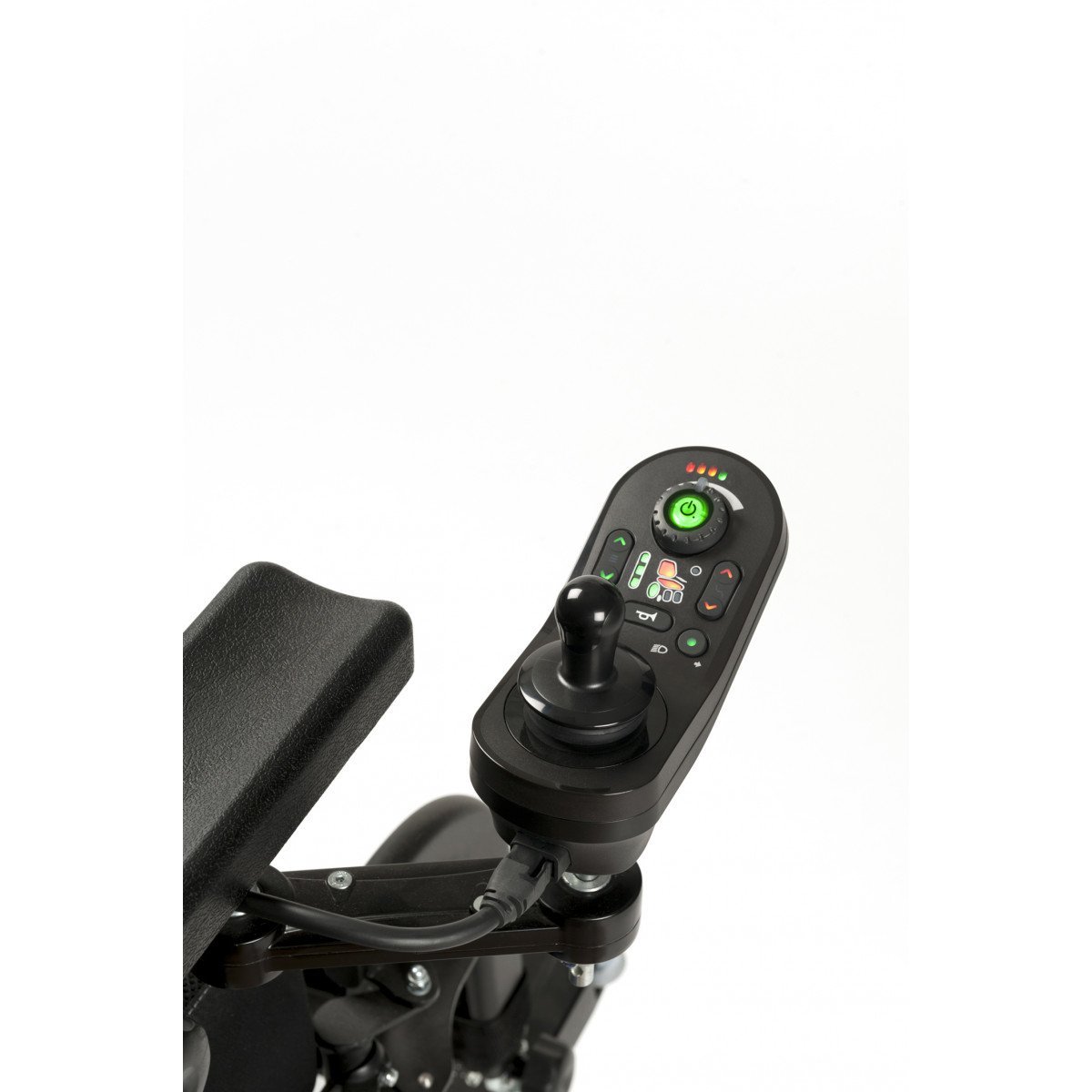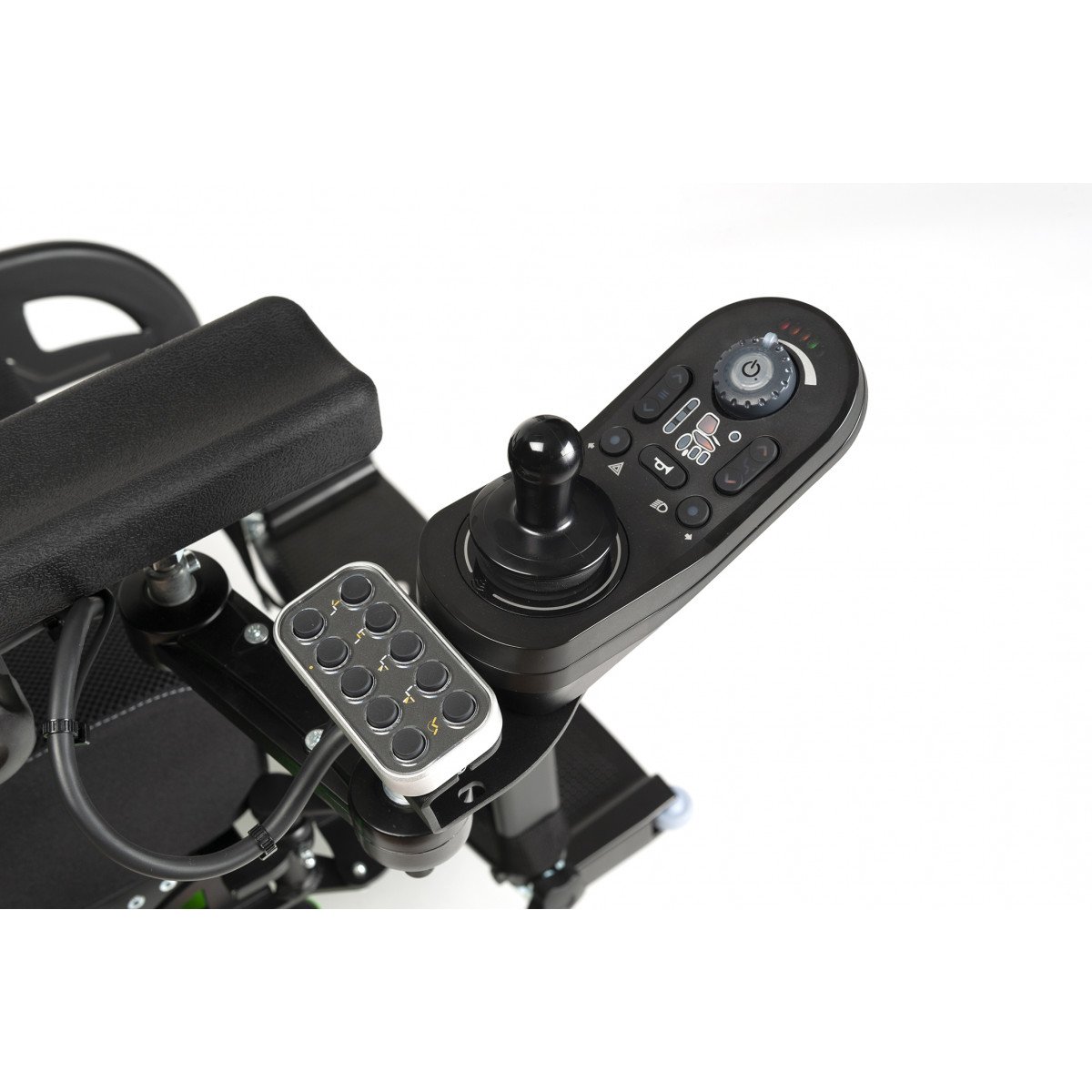 Коляска уверенно преодолевает небольшие порожки и неровности покрытия. Управление интуитивно понятное и чувствительное, а параметры сиденья можно настроить под индивидуальные потребности. Движение осуществляется с помощью удобного пульта с джойстиком, который точно реагирует на команды пользователя. Он может быть установлен как с правой, так и с левой стороны. Благодаря продуманным габаритам Navix легко помещается в лифте и без труда перевозится в автомобиле.