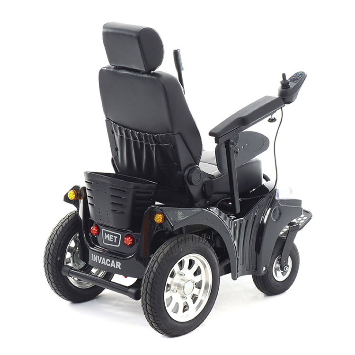 Кресло-коляска Met InvaCar (Мет ИнваКар) оснащено одними из наиболее мощных электромоторов, каждый из которых имеет мощность 600 Вт, и комплектуется парой ёмких аккумуляторов на 65 А/ч. Это решение предназначено для длительных и быстрых поездок.