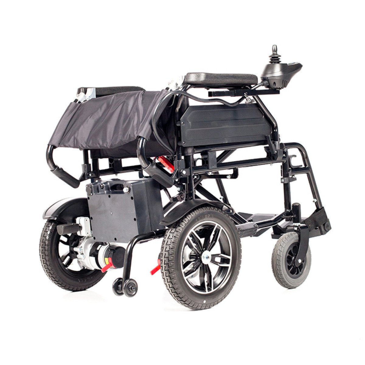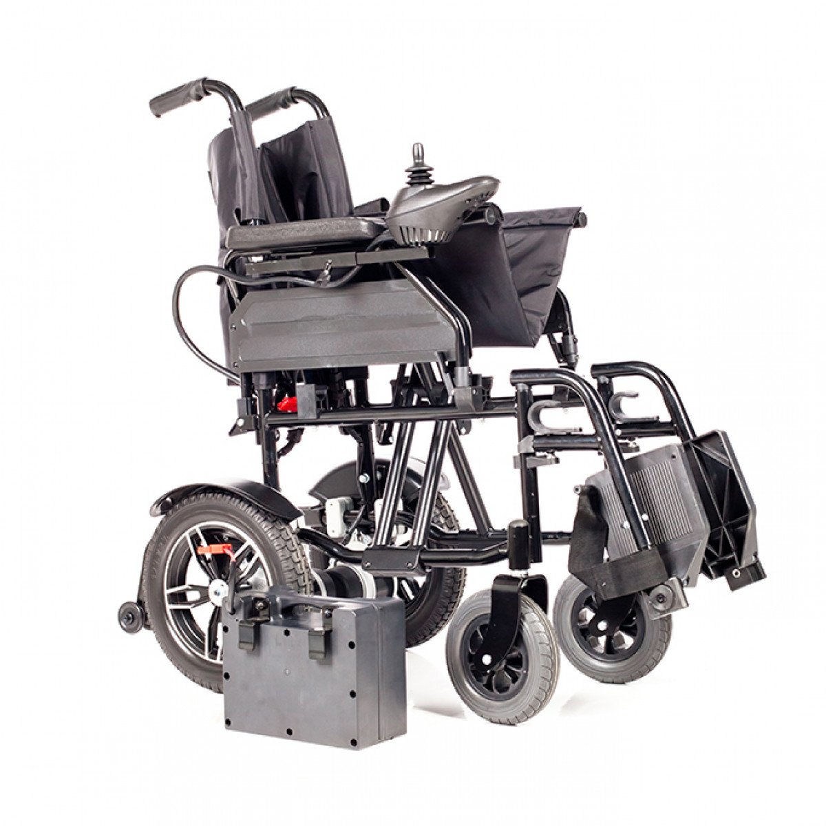 Рама изготовлена из стали с антикоррозийным покрытием, что обеспечивает надёжность конструкции. Коляска оснащена цельнолитыми колёсами, не требующими обслуживания. Два аккумулятора размещены под сиденьем и не требуют сложного ухода. Для безопасности предусмотрены ремень фиксации, стояночный тормоз и антиопрокидыватели с регулировкой по высоте. Складной механизм позволяет компактно хранить и перевозить коляску.