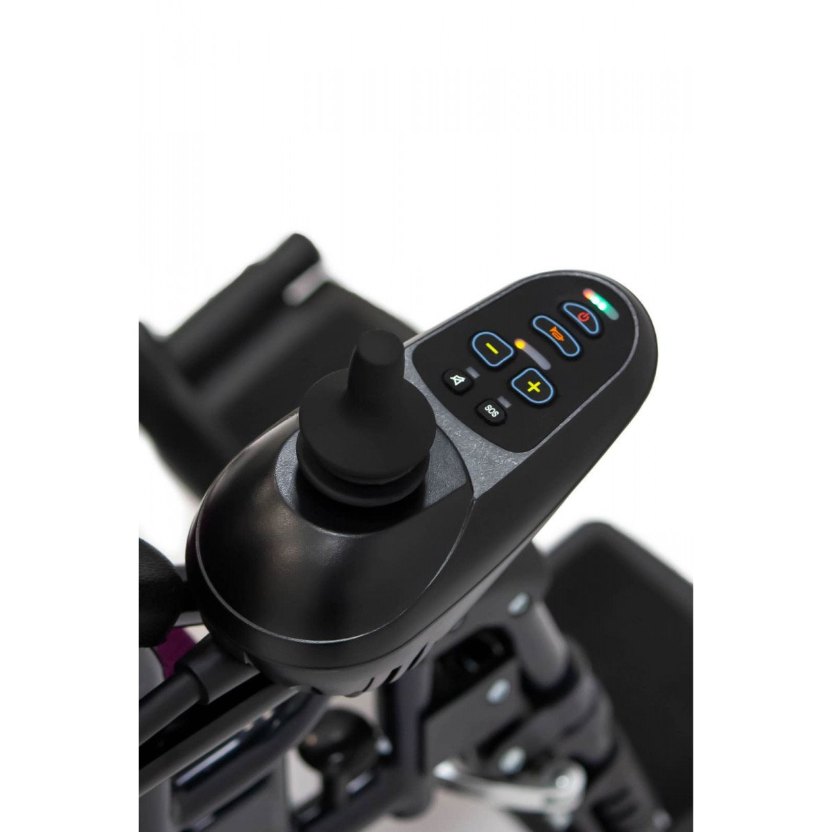 Модель оборудована системой защиты от опрокидывания и регулируемыми подножками, которые можно поднять для отдыха в горизонтальном положении. Управление простое и интуитивное — с помощью джойстика. Контроллер можно установить с любой стороны, а встроенный фонарик с USB-разъёмом позволит зарядить телефон или осветить путь в тёмное время суток.
