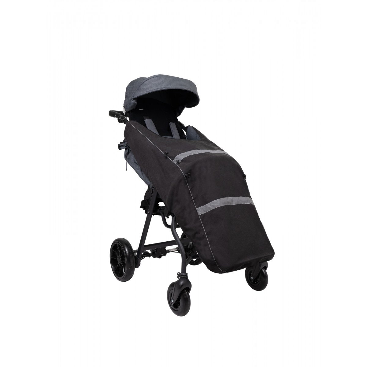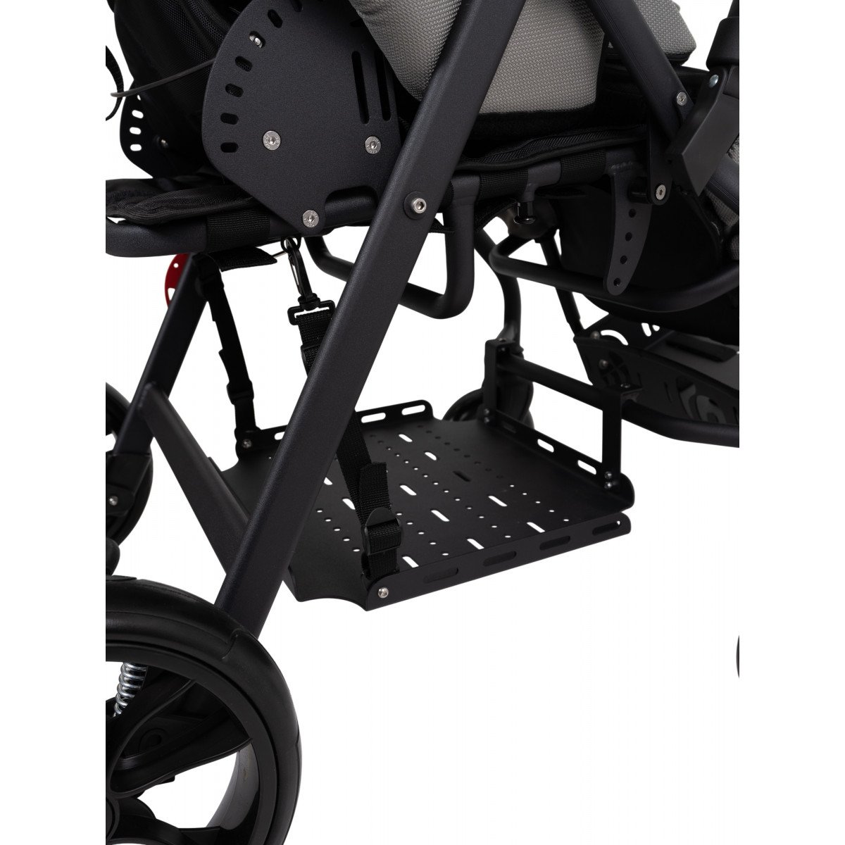 Коляска подстраивается под индивидуальные потребности: мягкие подушки формируют персональную посадку, а спинка плавно регулируется от активного положения до расслабленного отдыха. Всё продумано, чтобы тело сохраняло правильную позу без лишнего напряжения даже во время длительных прогулок.