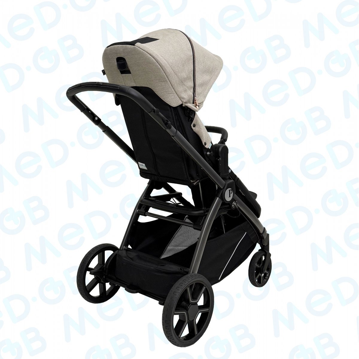 Коляска имеет легкую, но в то же время прочную алюминиевую раму, обеспечивая маневренность и простоту в управлении. Модель разработана с акцентом на меры предосторожности, необходимые для контроля осанки и поддержки в течение прогулок. Это особенно важно для детей, которые не могут самостоятельно удерживать правильное положение.