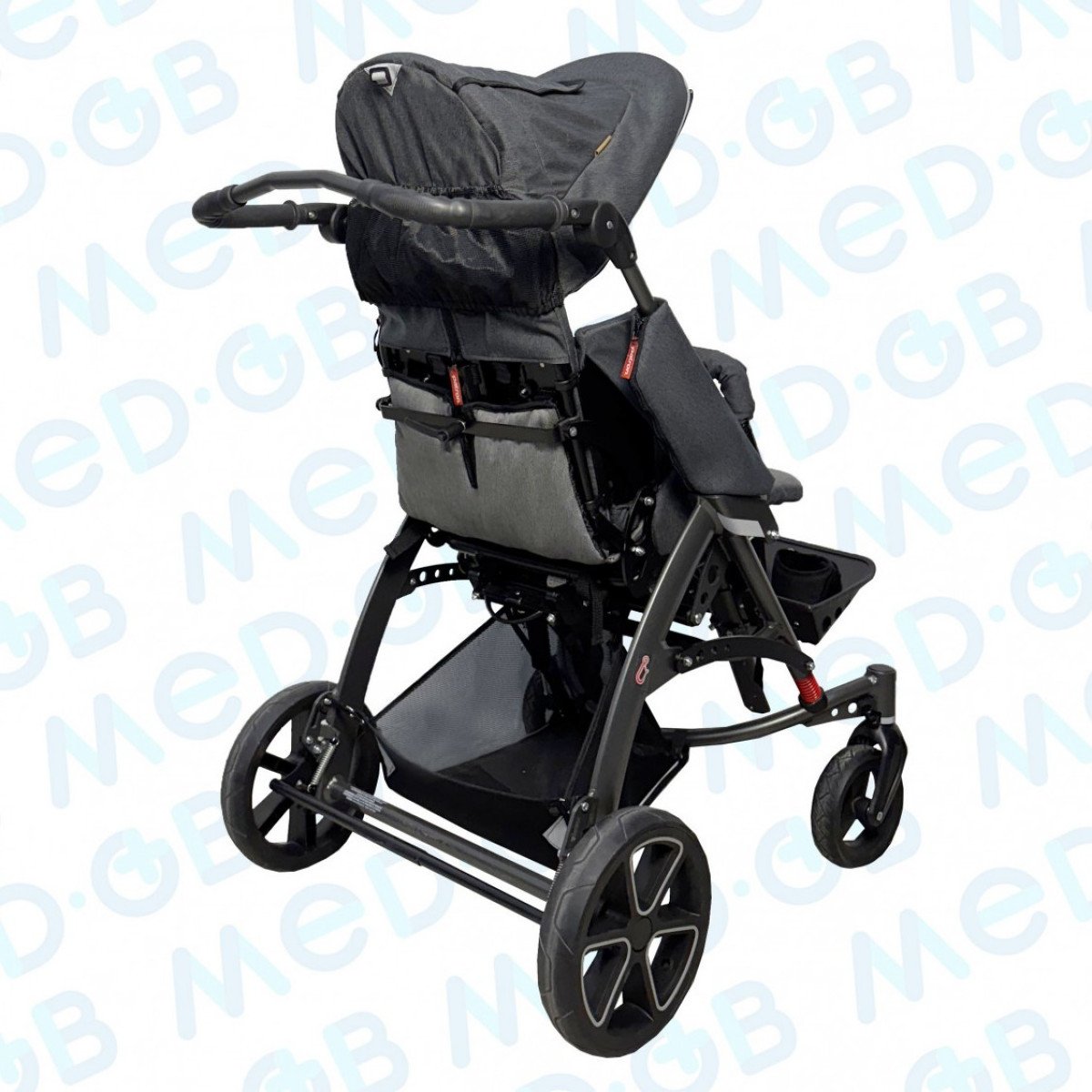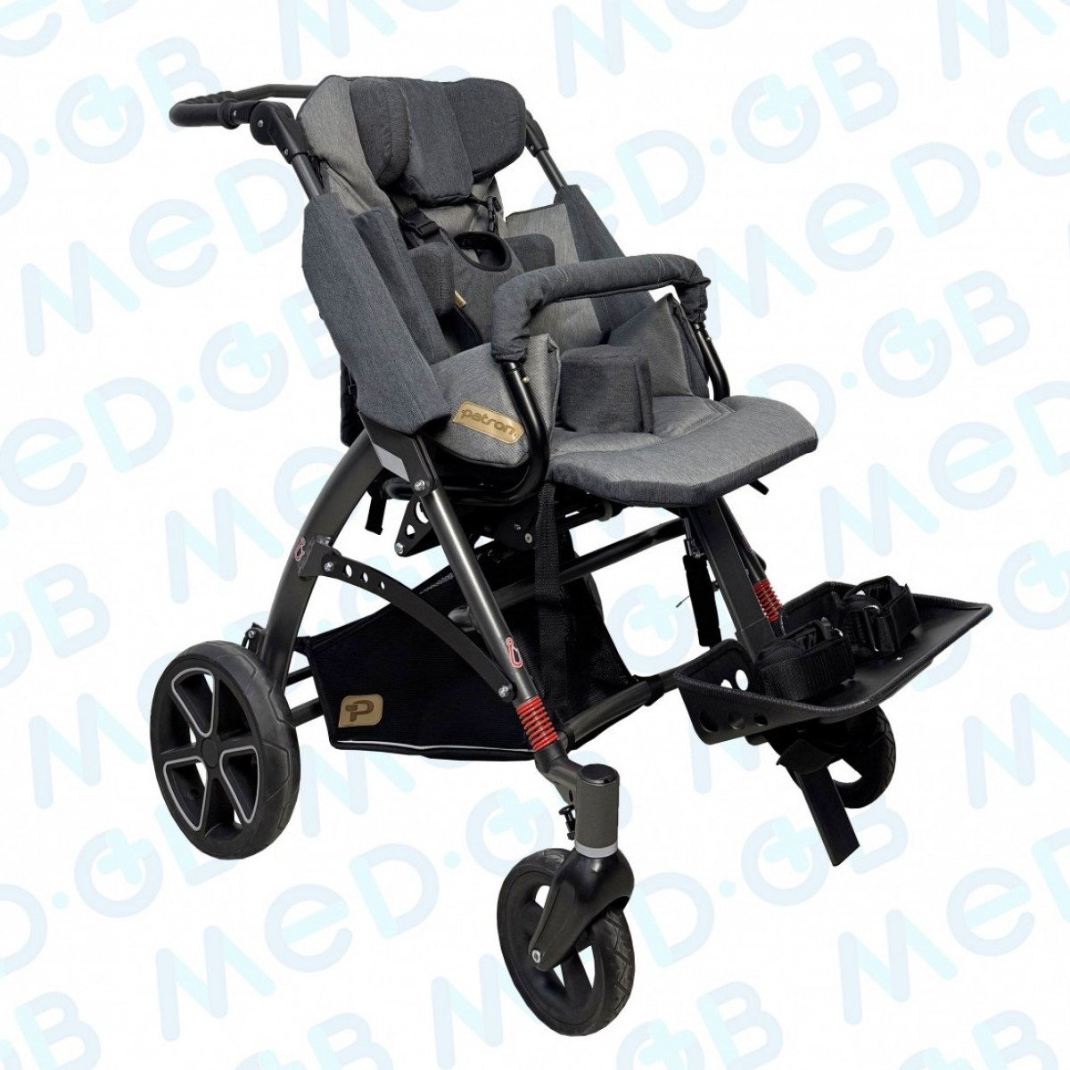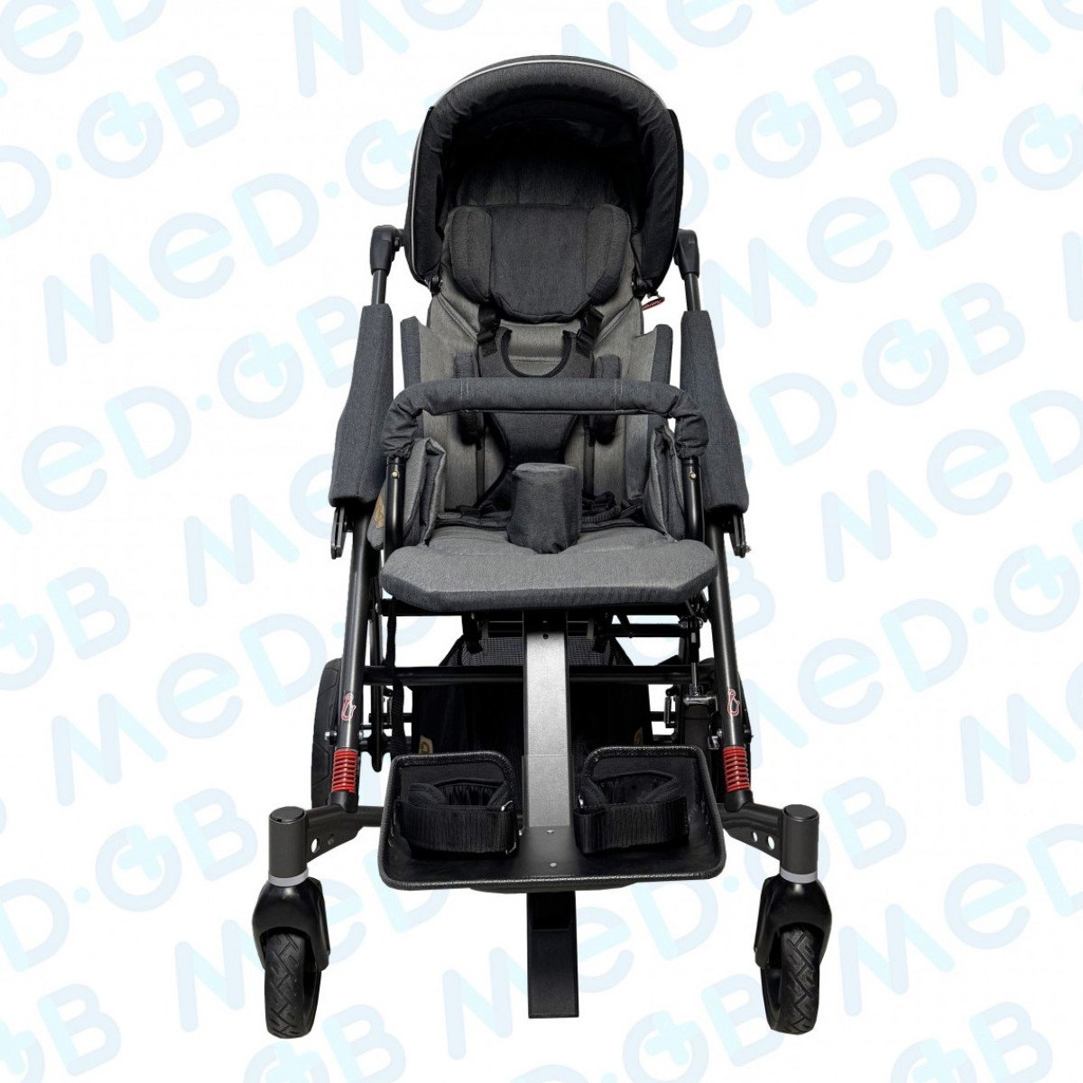 Кресло оборудовано улучшенной системой ремней и подушек для надёжного крепления, а дополнительные аксессуары позволяют варьировать позиционирование для получения нужного результата.