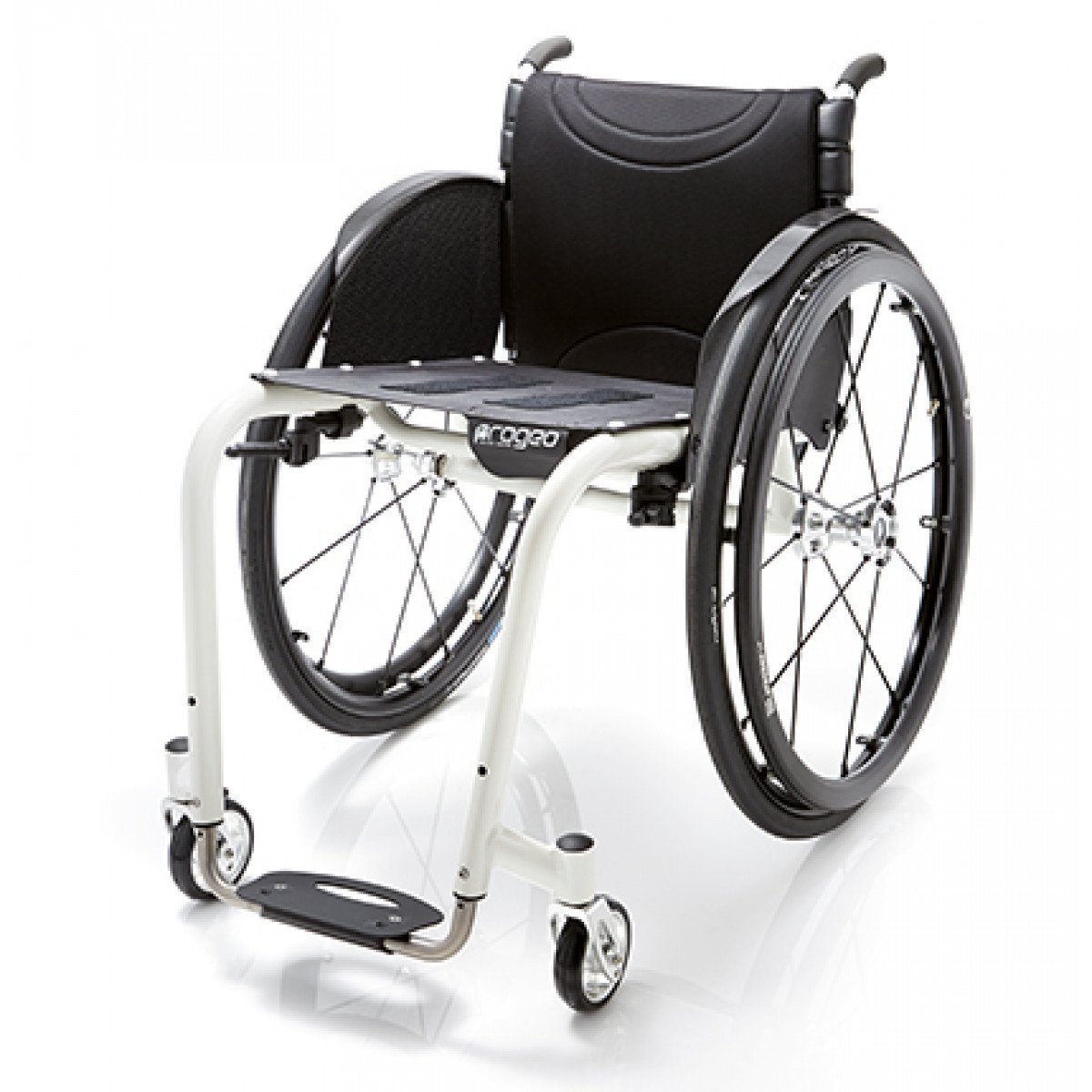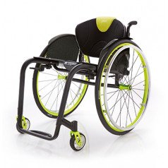 Боковые щитки в форме крыльев служат двойной цели: они защищают от грязи и при этом функционально выполняют роль подлокотников, обеспечивая дополнительный комфорт во время использования коляски. Единая подножка с текстильной поддержкой пяточной зоны разработана для удобства пользователей, хотя и не имеет возможности регулировки. Для обеспечения дополнительной маневренности и адаптивности коляски пользователь может настроить развал задних колёс в диапазоне от 0° до 12°.