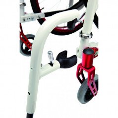 Помимо этого, коляска обладает широчайшими возможностями по настройке различных параметров, что делает её прекрасным выбором для самого широкого круга пользователей. Отличительной же особенностью предлагаемой модели является гибкая система настроек подножки. Платформа подножек может быть как единой, так и в виде двух раздельных опор. Также подножки могут быть отрегулированы по углу наклона, положению. Их можно откинуть, как внутрь, так и наружу и снять при необходимости. Настройка положения подножки осуществляется с помощью небольшого рычага, интегрированного во внутреннюю часть дуги.