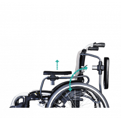 Подлокотники коляски легко откидываются назад одним движением, что обеспечивает удобный доступ при посадке и высадке, а также они могут регулироваться по высоте. Кроме того, Karma Ergo 352 имеет запатентованный механизм поворотных подножек, который предоставляет возможность легко регулировать их положение, откидывая их наружу или внутрь.