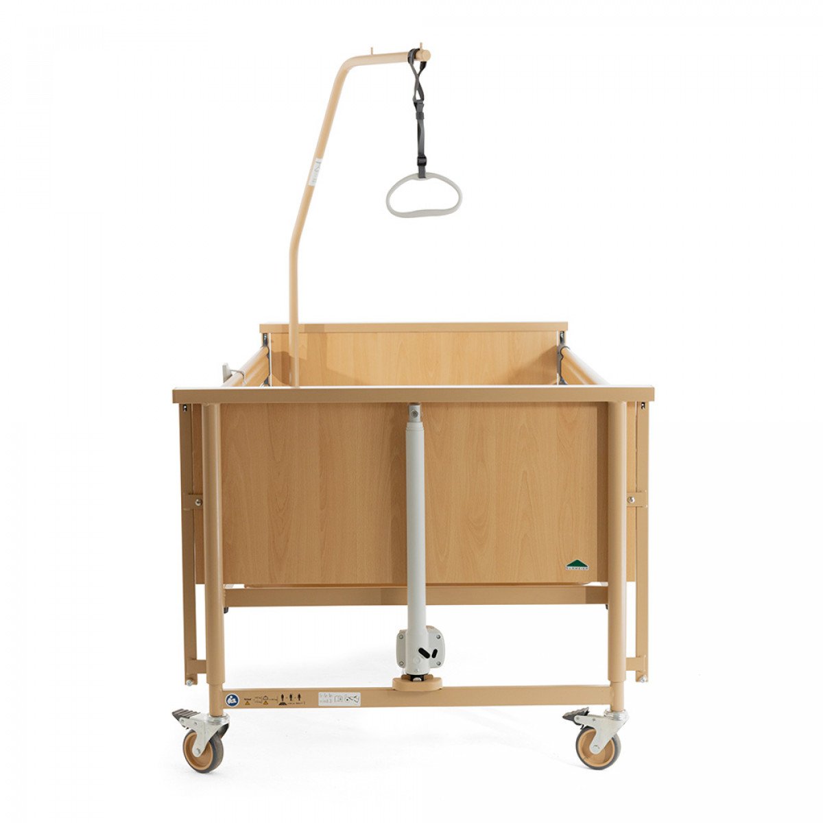 Модель Dali Econ Low Entry рассчитана на вес пользователя до 185 кг и оборудована прочной стальной рамой. Боковые ограждения с обеих сторон защищают от случайного падения и легко складываются. Кровать поставляется без декоративных накладок, что упрощает санитарную обработку и делает конструкцию более практичной для медицинских условий. Благодаря складной конструкции кровать удобно хранить и транспортировать.