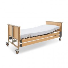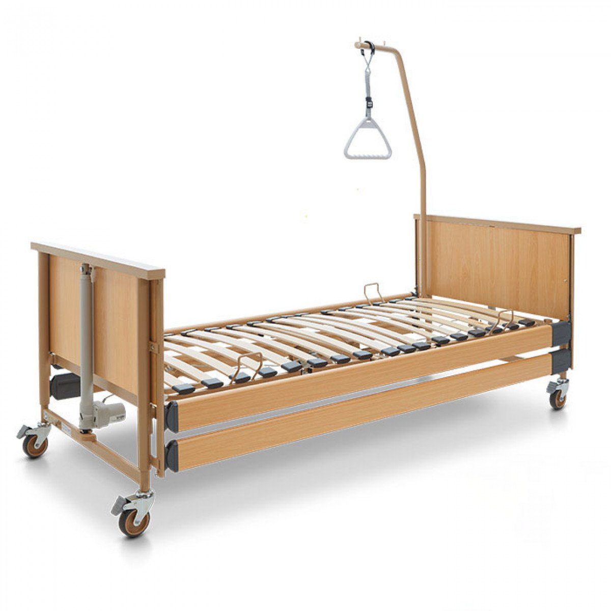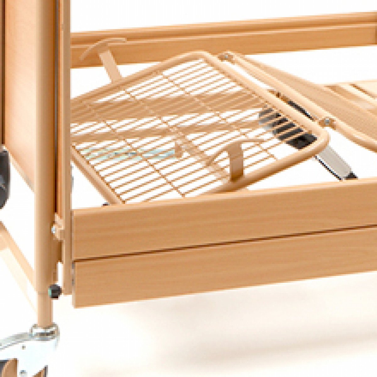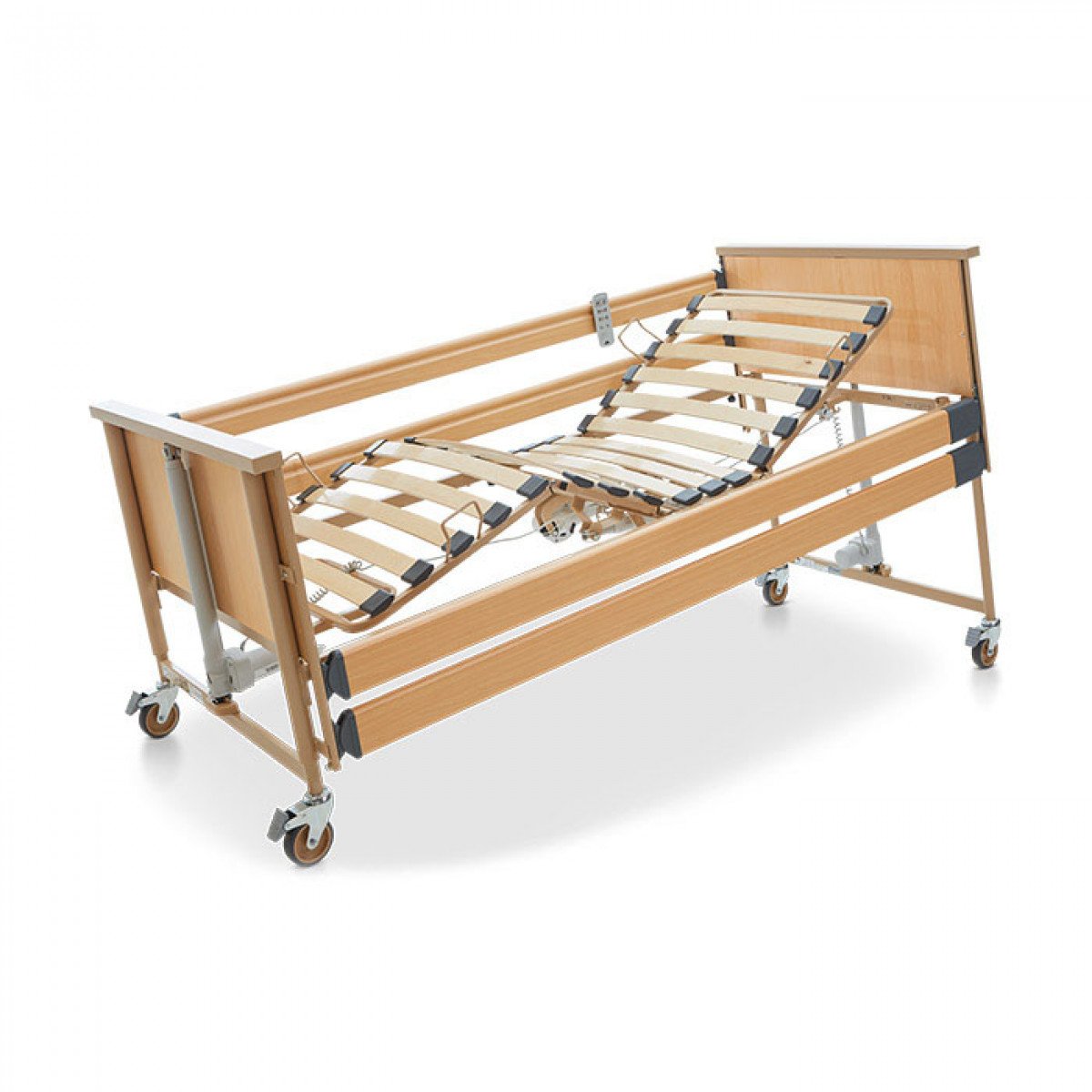 Кровать регулируется по высоте и может принимать положение антитренделенбурга. Матрасное основание разделено на четыре секции: головную, среднюю, тазобедренную и ножную. Головная секция регулируется электроприводом. Боковые ограждения с обеих сторон защищают пользователя от падения и при необходимости легко складываются.