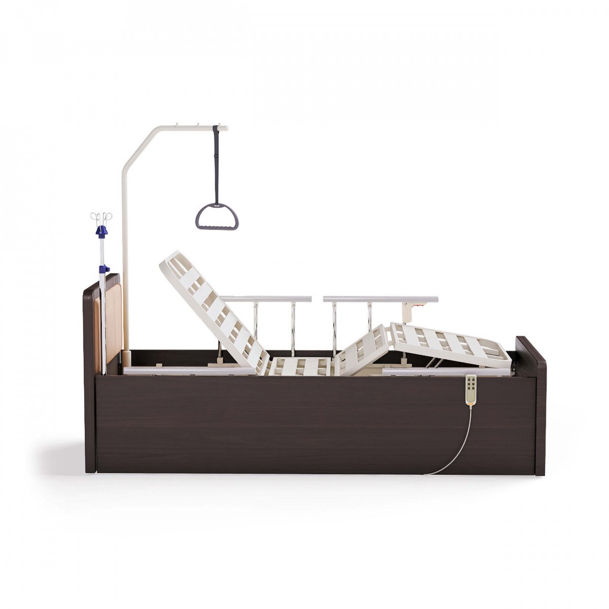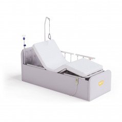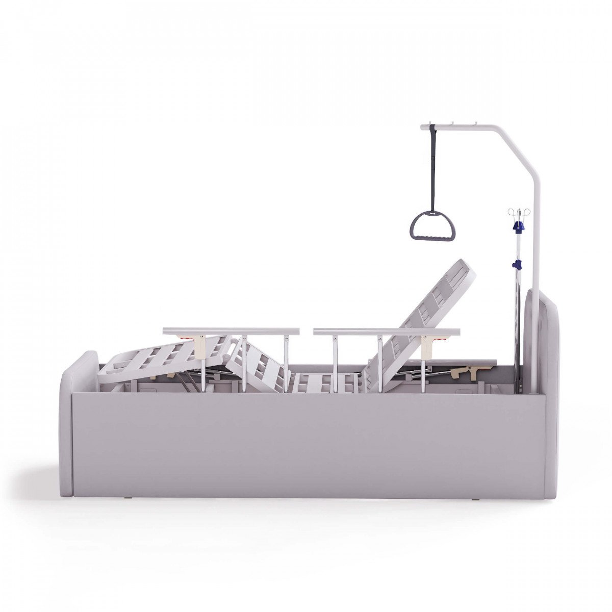 Кровать оснащена системой регулировки: с помощью проводного пульта дистанционного управления вы можете легко изменять положение изголовья и изножья, приспосабливая кровать к индивидуальным потребностям пользователя. Боковые ограждения, изготовленные из прочного алюминия, можно быстро опустить для удобства доступа.