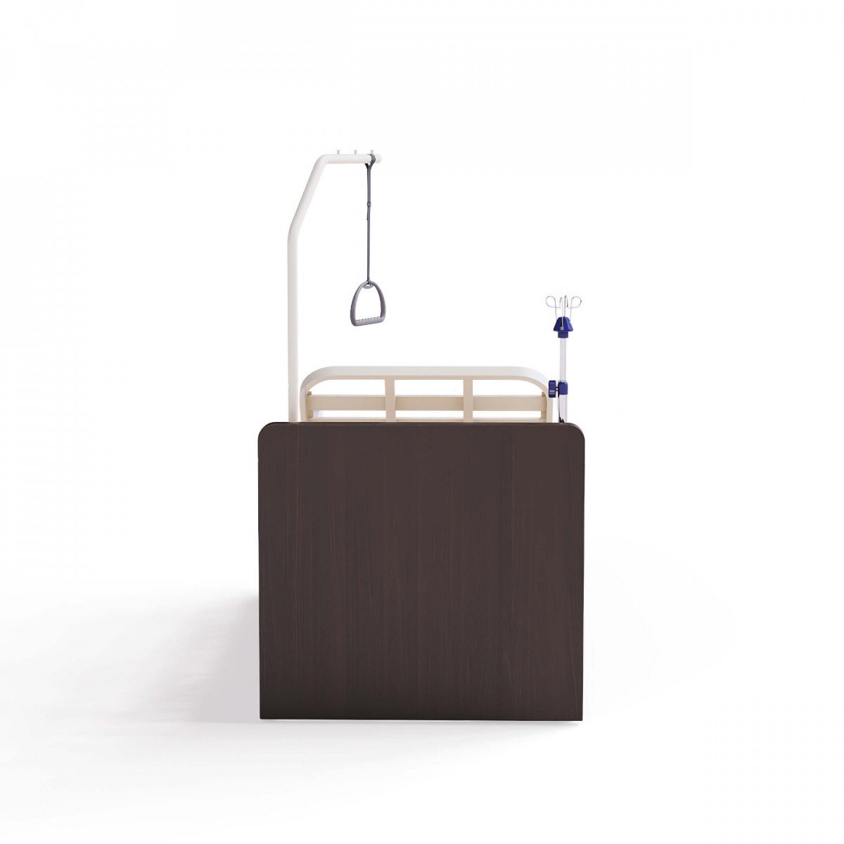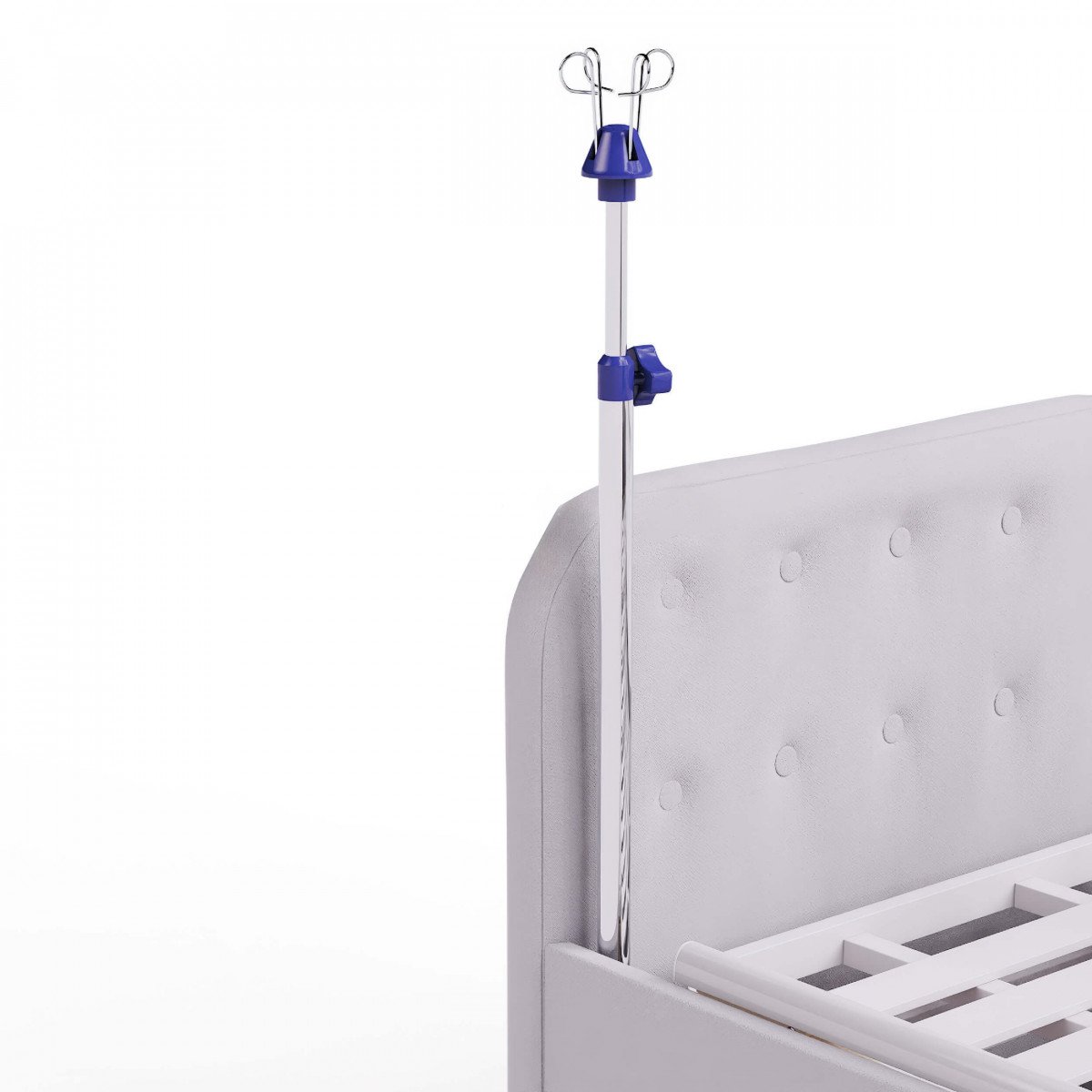 В изголовье кровати есть четыре функциональных отверстия: два — для инфузионной стойки и два — для штанги с регулируемой ручкой, что облегчает процесс подтягивания или перемещения пользователя.