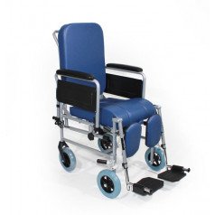 Кресло-коляска Vermeiren 9302 (Вермейрен 9302) — это удобная санитарная модель на маленьких колёсах, предназначенная для пожилых людей и пользователей с ограниченными возможностями при посещении ванных и туалетных комнат. Коляска оснащена четырьмя широкими полиуретановыми колёсами, что обеспечивает устойчивость и лёгкость перемещения. Передние колёса снабжены стояночными тормозами для безопасной фиксации кресла во время пересадки пользователя.