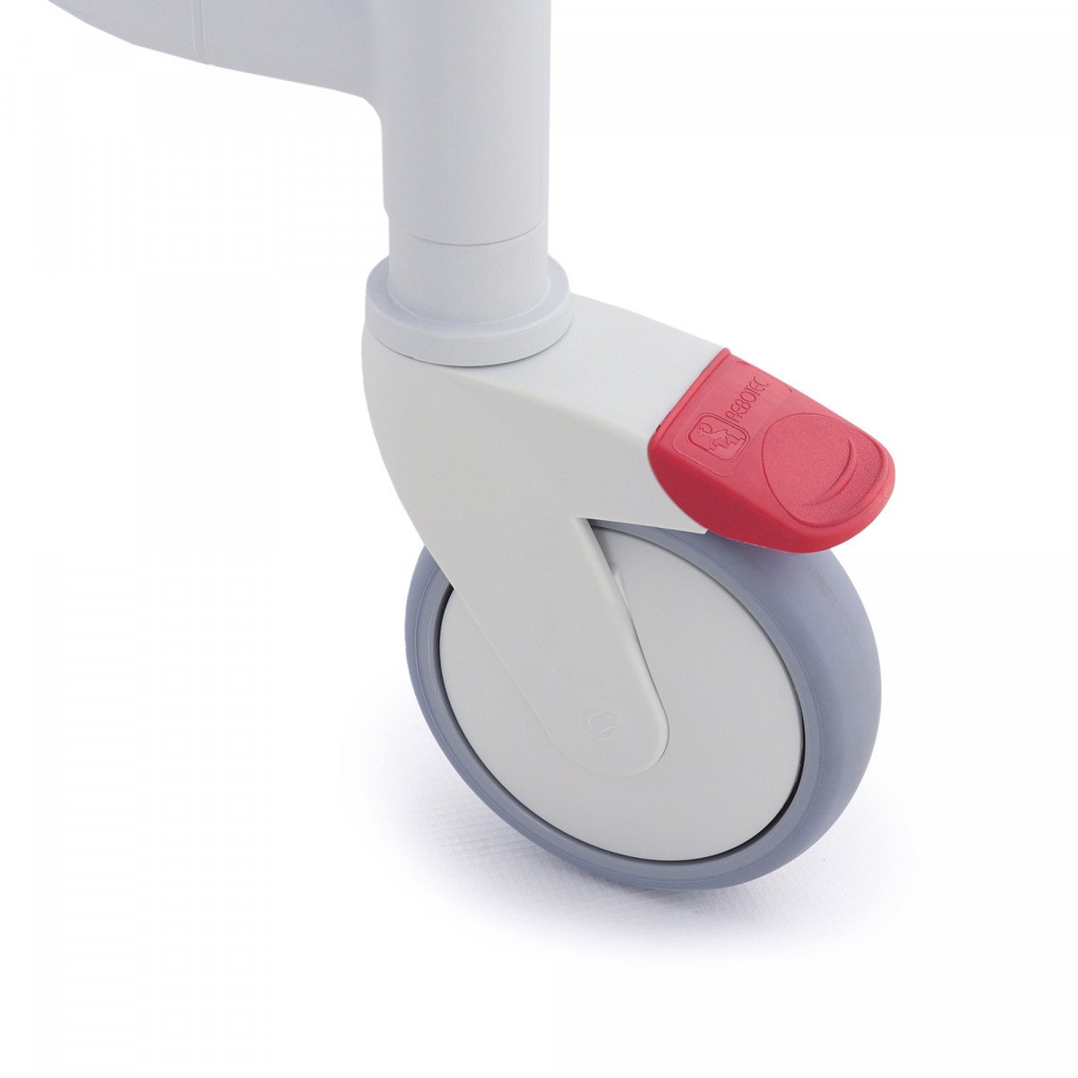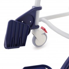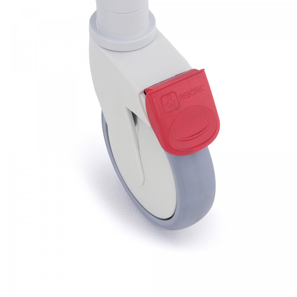 Rebotec Бонн оснащён съёмными вращающимися подножками с регулировкой по высоте, что обеспечивает удобную посадку и комфортное положение ног. Эргономичная форма спинки поддерживает спину, снижая нагрузку при длительном использовании. Четыре опоры оснащены колёсами, при этом задние колёса оборудованы надёжными стояночными тормозами с функцией фиксации. Конструкция разборная, соединяется болтами из нержавеющей стали, что облегчает хранение и транспортировку.