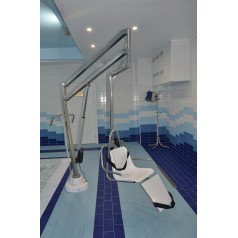 Подъёмник изготавливается по индивидуальным параметрам заказчика, что позволяет адаптировать конструкцию под особенности помещения и бассейна. Основные элементы производятся из нержавеющей стали высокого качества, не подверженной коррозии и идеально подходящей для влажной среды. Мачта оснащена усиленной стабилизирующей балкой, которая удерживает кресло в равновесии и предотвращает качание во время подъёма и опускания.
