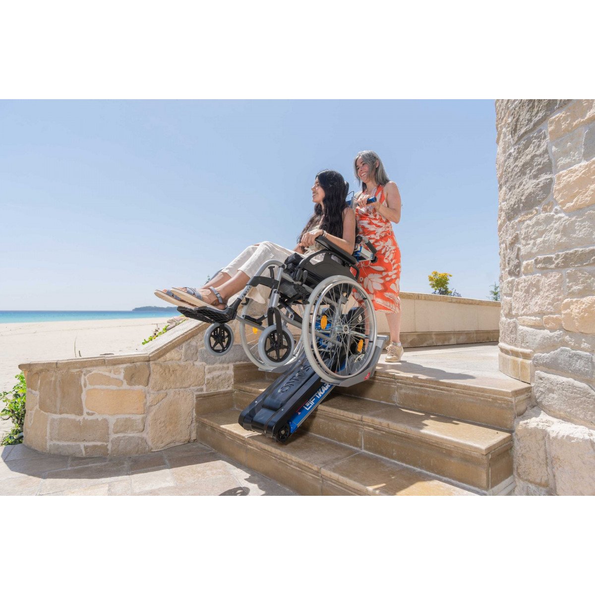 Лестничный гусеничный подъёмник SANO PTR 160 (Сано ПиТиАр 160) — современное устройство для безопасного перемещения людей в инвалидных колясках по лестницам. Подходит для большинства механических кресел, включая детские, и отличается высокой прочностью при сравнительно малом весе благодаря использованию авиационного алюминия.