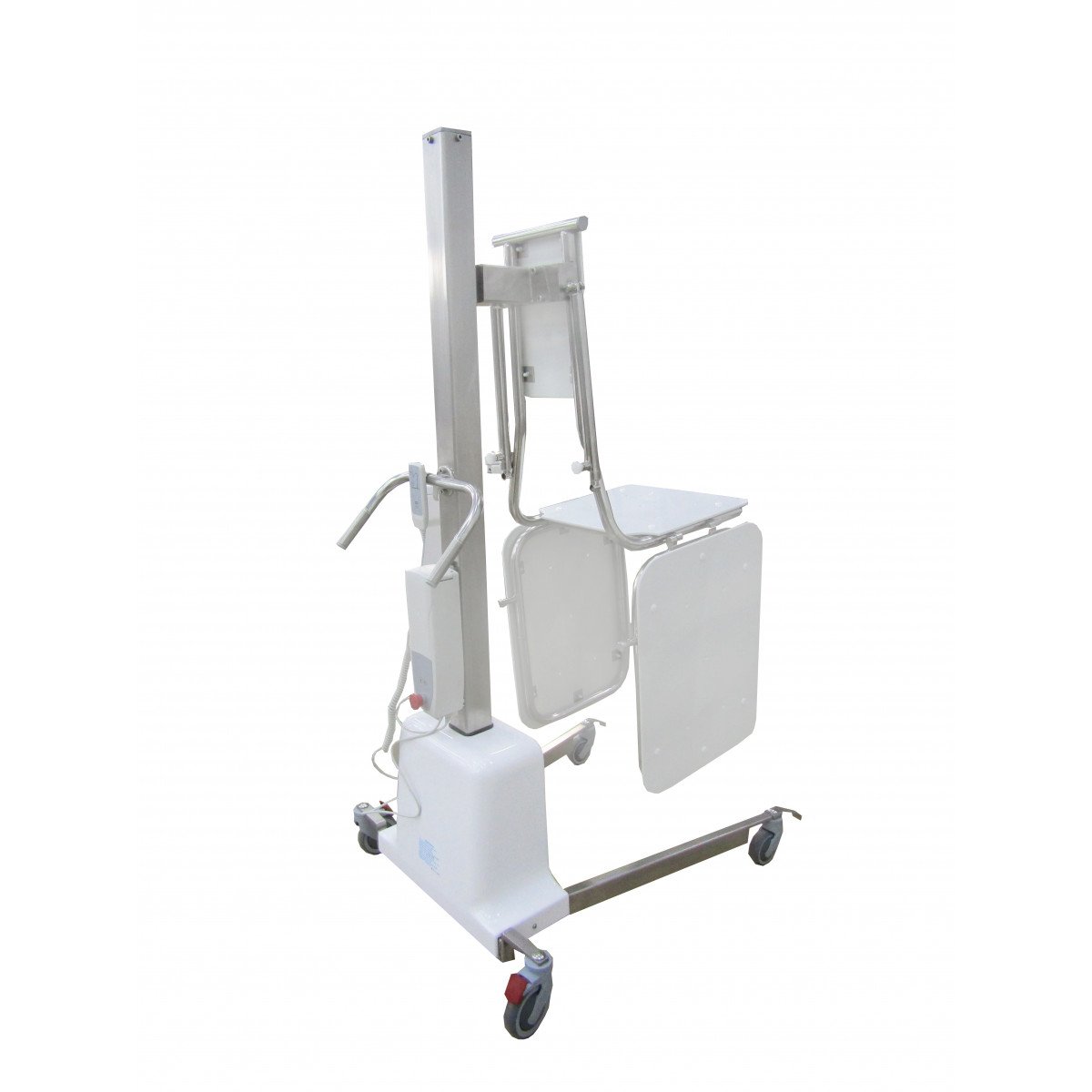 Конструкция выполнена на прочной металлической основе и оснащена подъёмным механизмом, который поднимает и опускает ложе нажатием одной кнопки. Трёхсекционная платформа регулируется по высоте и углу наклона, что помогает выбрать удобное положение для каждого пациента. Благодаря компактным размерам и маневренным колёсам подъёмник легко перемещается между помещениями, не занимая много места.