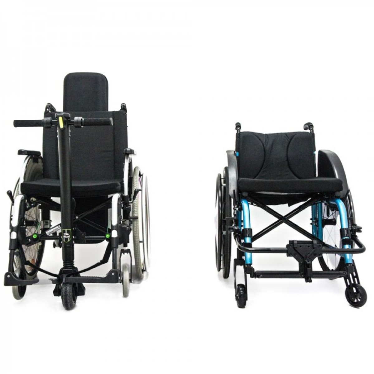 Для разных типов кресел предусмотрены два вида адаптеров. Адаптер «Актив» предназначен для активных колясок с нескладной рамой и несъёмными или неоткидными подножками. Крепление происходит за счёт фиксации зажимов на передних дугах подножки. Адаптер «Стандарт» подходит для ручных складных кресел с откидными подножками: приставка крепится к нижней части рамы под сиденьем, обеспечивая такую же стабильность и лёгкость в эксплуатации.