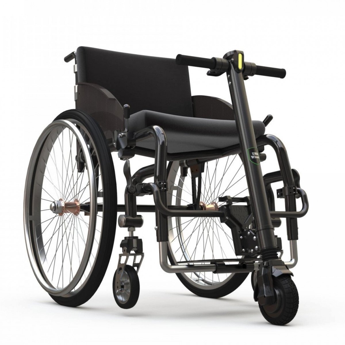 UNAwheel Mini (Юнавил Мини) — это ультралёгкая электроприставка для механических кресел-колясок, позволяющая значительно увеличить мобильность и комфорт в повседневной жизни. Она совместима почти со всеми креслами активного и базового типов и легко крепится с помощью адаптера всего за 10 секунд без необходимости использования инструментов.