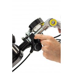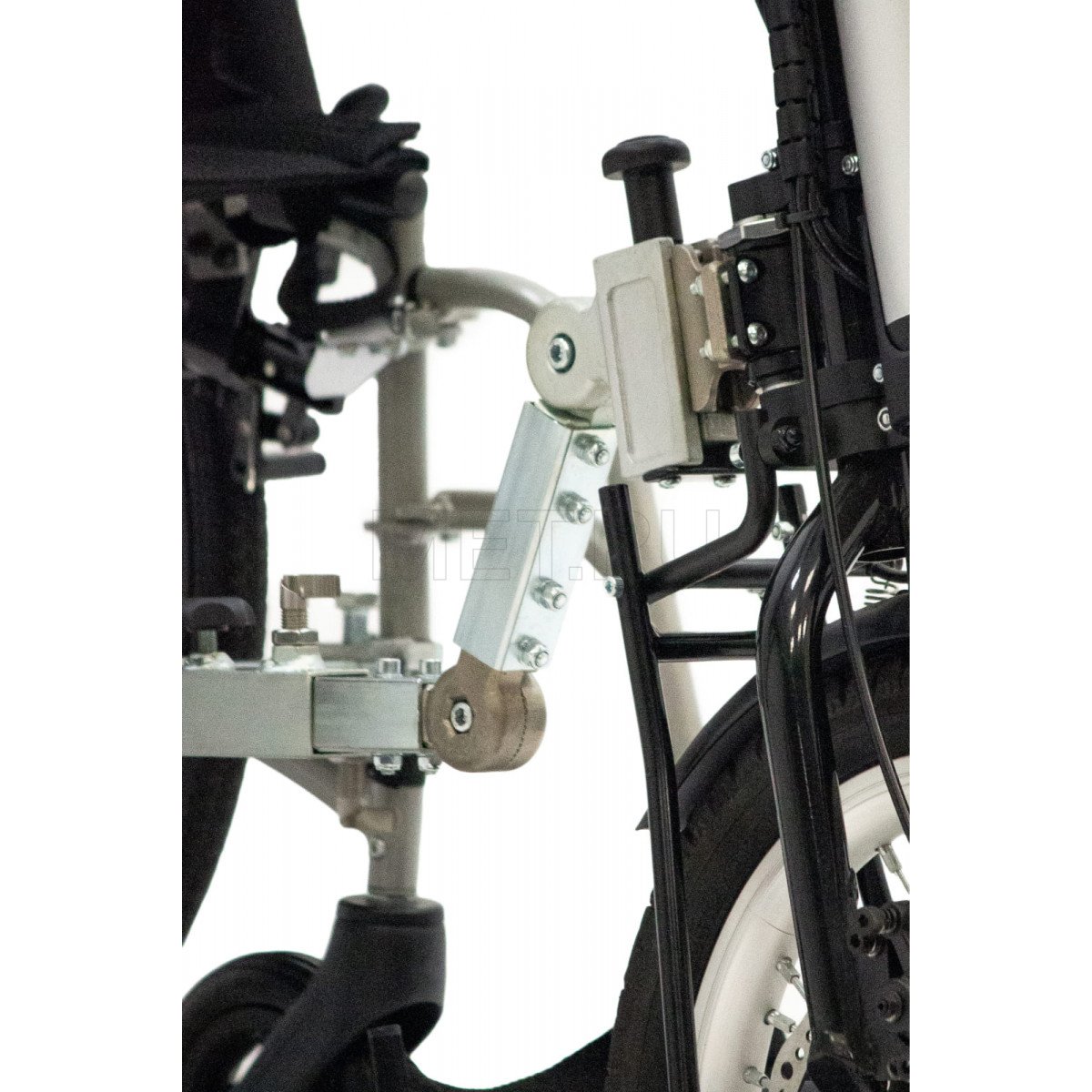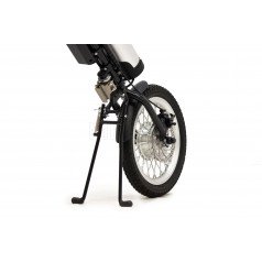- Быстросъёмное крепление к переду механического кресла-коляски позволяет снимать мото-колесо с конструкции не сходя с кресла