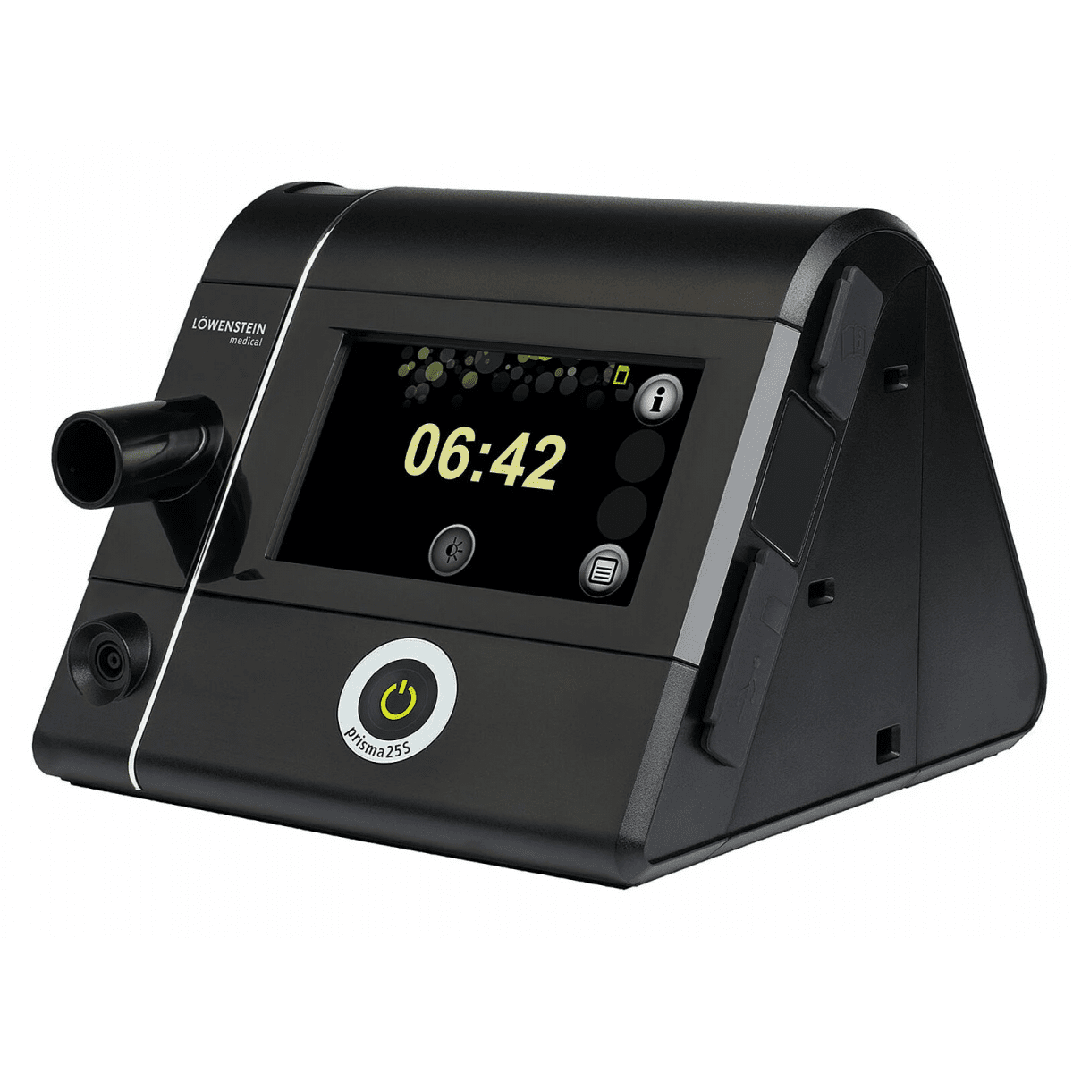 Аппарат регулирует давление в трёх уровнях: повышает его во время вдоха, снижает при выдохе и мягко стабилизирует перед новым вдохом. Это делает дыхание спокойным и естественным, а терапию — максимально щадящей. Благодаря продуманной системе работы, Prisma 25S эффективно помогает при синдроме ночной гиповентиляции, ХОБЛ и других нарушениях дыхания во сне.