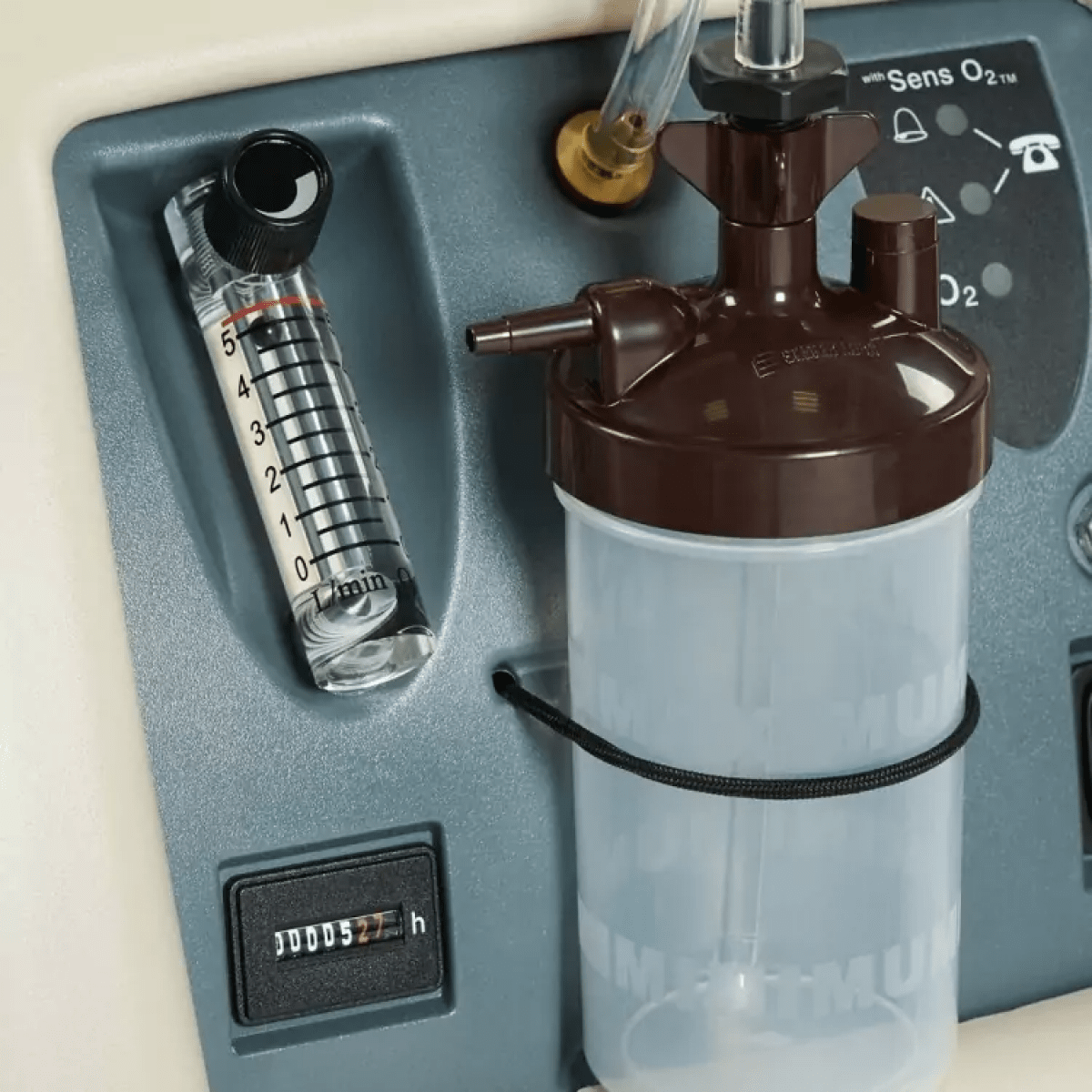 - Встроенный увлажнитель предотвращает пересыхание слизистых во время кислородотерапии