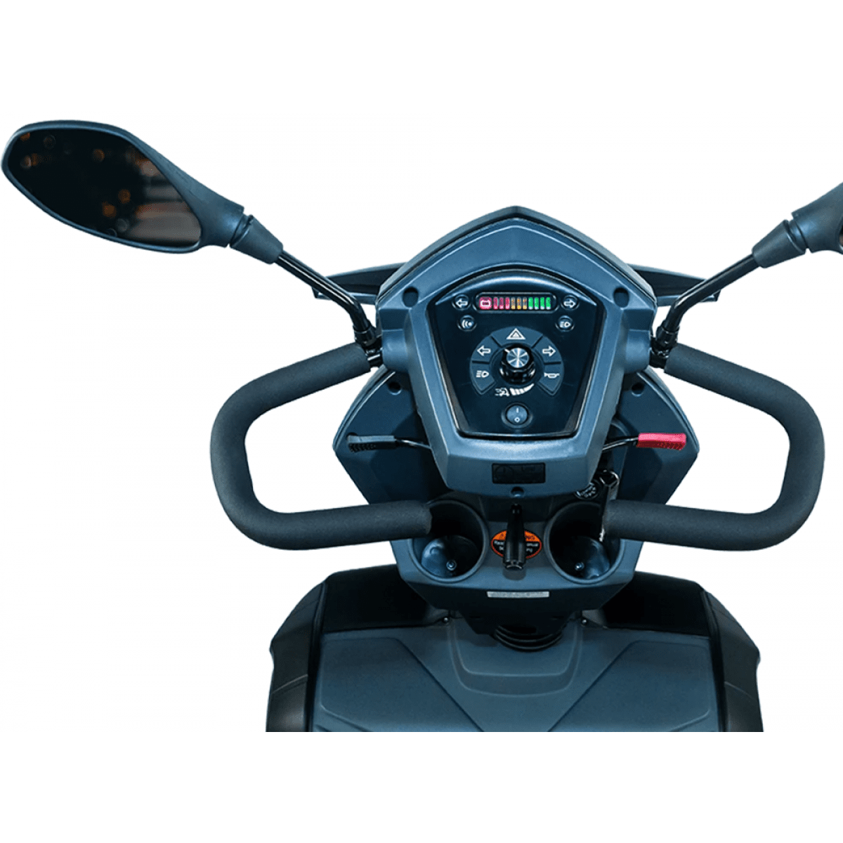 Heartway S23 (Хёртвэй Эс23) — это мощный четырёхколёсный электроскутер, идеально подходящий для дальних прогулок, поездок по сельской местности и неровным дорогам. Модель оснащена крупными пневматическими колёсами с независимой подвеской, что обеспечивает отличную проходимость и плавность хода. Передний и боковые бамперы, светодиодные фары, габаритные огни и боковые отражатели повышают безопасность и делают скутер заметным в тёмное время суток. Зеркала заднего вида и эргономичный руль-петля дополняют комфорт и удобство управления.