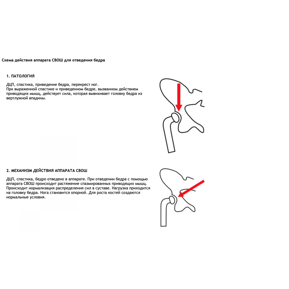 Конструкция Allard Int Swash Steady разработана с учётом естественной биомеханики: шарниры повторяют движения тазобедренных суставов, а амплитуда настраивается индивидуально под ребёнка. Аппарат снижает гипертонус приводящих мышц, способствует отведению бёдер, выпрямлению туловища и разгибанию коленей. За счёт этого повышается устойчивость в положении стоя и сидя, уменьшается нагрузка на суставы и снижается риск подвывиха бедра.