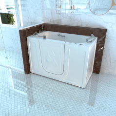 Ключевая особенность — удобная дверь, которая значительно упрощает вход и выход из ванны, что особенно важно для людей с ограниченной подвижностью. Ванная оснащена блокировкой дверцы при наполнении, что предотвращает случайное открытие и проливание воды. Противоскользящее дно и водонепроницаемая изоляция дверцы обеспечивают дополнительную безопасность.