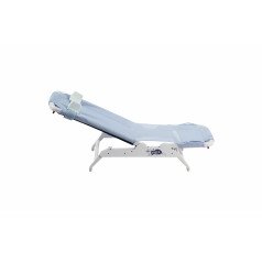 Кресло имеет складную и регулируемую конструкцию, что делает его удобным в использовании и хранении. Оно изготовлено из лёгкого прочного формованного пластика. Поверхность кресла покрыта усиленным винилом, который устойчив к механическим повреждениям и легко чистится. Металлические детали, выполненные из нержавеющей стали, гарантируют долговечность и устойчивость к коррозии.