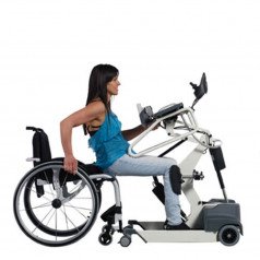 Передвижной подъёмник Aacurat Standing Up 6000 (Аакурат Стэндинг Ап 6000) — это многофункциональное реабилитационное устройство с электрическим управлением, предназначенное для людей с ДЦП, травмами или врождёнными нарушениями центральной нервной системы. Он помогает безопасно перевести пользователя из положения сидя в положение стоя прямо из инвалидной коляски, а также используется для тренировки равновесия и поддержания тонуса. Подъём и спуск осуществляются плавно с помощью электропривода, а регулировка угла наклона — с использованием пневматической пружины.