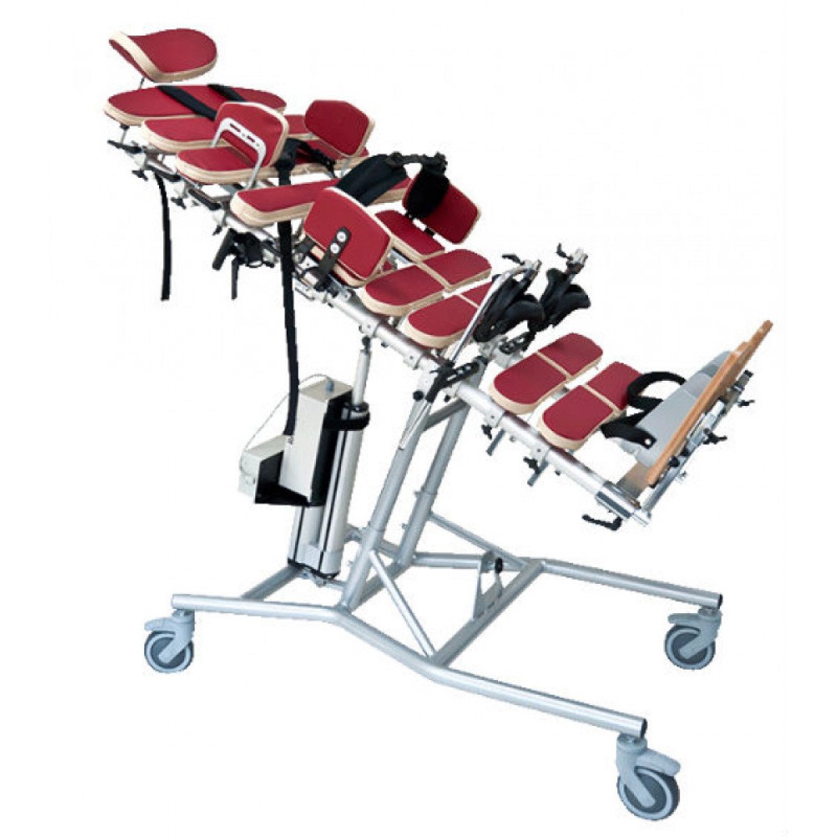 Каждый сегмент вертикализатора регулируется по высоте, глубине и углу наклона, а также может адаптироваться по мере роста ребёнка. Поддержка таза настраивается в трёх измерениях, обеспечивая точную фиксацию. Опора для ног регулируется по высоте, а электропривод позволяет мягко и безопасно изменять угол наклона, облегчая привыкание к вертикальному положению.