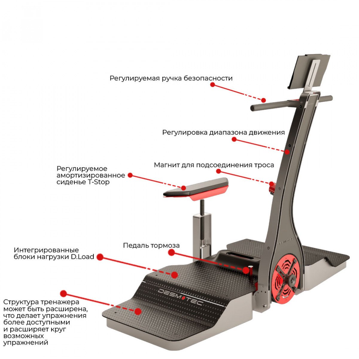 Тренажёр Desmotec D.Plus (Десмотек Ди.Плюс) — это изоинерционный тренажёр, предназначенный для эксцентрической тренировки нижних конечностей и нижней части корпуса. Он использует передовую изоинерционную технологию для тренировки мышц с минимальным напряжением, сочетая силовую нагрузку с подвижностью и повышенной скоростью. Встроенная система биологической обратной связи (БОС) в режиме реального времени предоставляет информацию о качестве выполняемого движения, позволяя корректировать его по мере необходимости. D.Plus работает в закрытой кинетической цепи (CKC) и идеально подходит для активных и восстановительных тренировок мышц ног, сухожилий и нижней части тела.