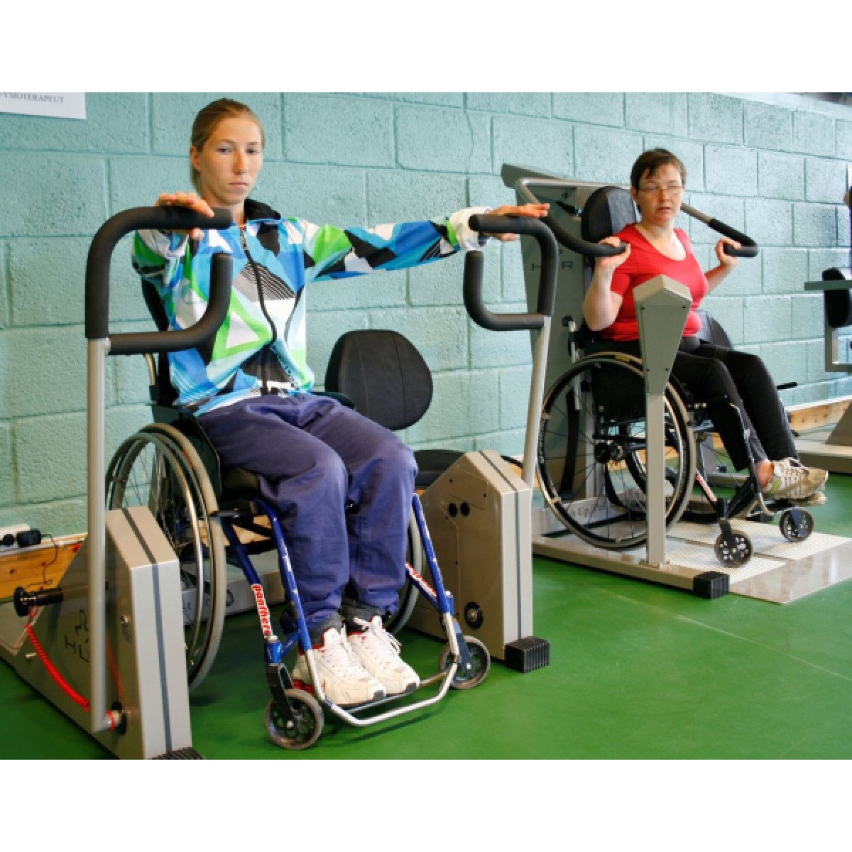 Hur Easy Access 9120 (Хур Изи Аксес 9120) – это идеальный тренажёр для людей с ограниченными возможностями, который позволяет тренироваться прямо из инвалидной коляски. Это два тренажёра в одном: жим вверх для дельтовидных мышц и трицепсов, а также тяга вниз для тренировки широчайших и трапециевидных мышц. С его помощью можно прорабатывать сразу несколько групп мышц, экономя пространство в тренажёрном зале.