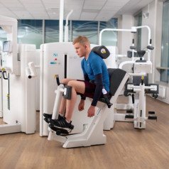 David Back Extension G110 оснащён фиксатором колена, тазовым ремнём, а также регулируемой платформой для ног, что обеспечивает надёжную безопасность и точность во время тренировки. Эргономичное сиденье и изогнутая подушка спинки обеспечивают комфорт во время тренировки и позволяют точно настроить параметры тренировки для каждого пользователя.