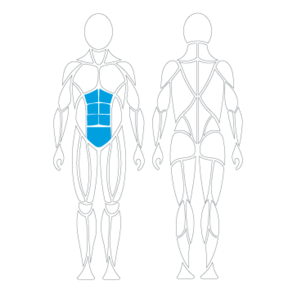 - Уникальная фиксация ног исключает активацию сильных сгибателей бедра, помогая воздействовать на область живота