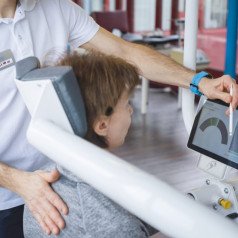 David Cervical Rotation G140 выполняет тестирование амплитуды движений, когда шейный отдел позвоночника вращается в обоих направлениях (вправо и влево). Это позволяет контролировать и корректировать работу мышц шеи, способствуя их укреплению. Устройство эффективно для использования при реабилитации после травм и заболеваний, таких как межпозвоночные грыжи, остеоартрит и сколиоз.