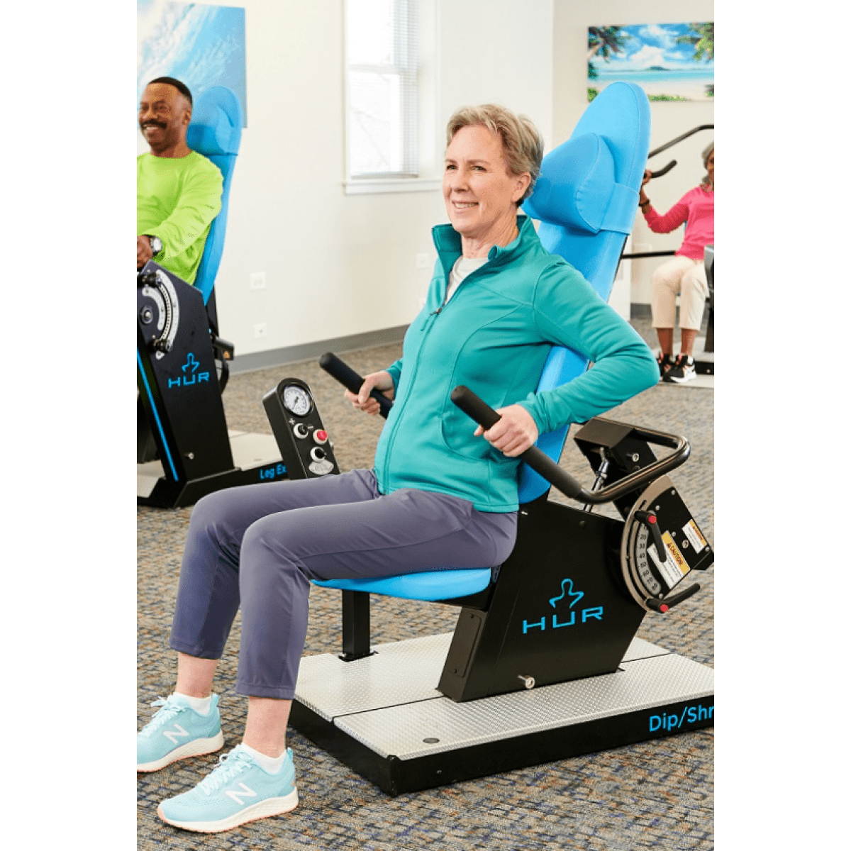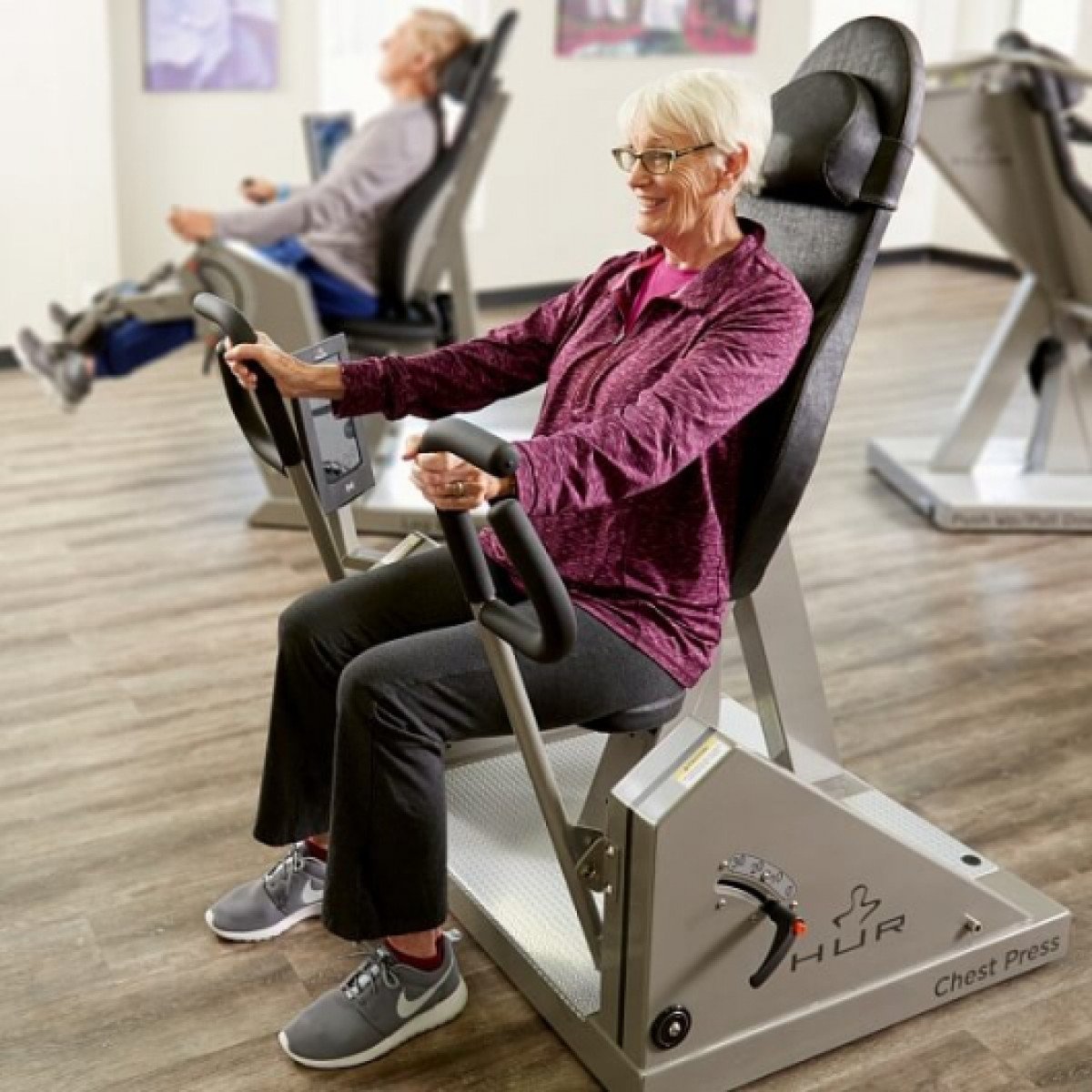 Тренажёр Hur Rehabilitation 5140 (Хур Рехабилитэйшн 5140) предназначен для тренировки верхней половины тела, включая грудные мышцы, бицепсы и предплечья. Оба рабочих рычага могут перемещаться независимо друг от друга, что позволяет выполнять как синхронные, так и попеременные движения, повышая функциональность тренажёра. Уровень нагрузки регулируется с помощью кнопок и может быть изменен даже во время выполнения упражнения.