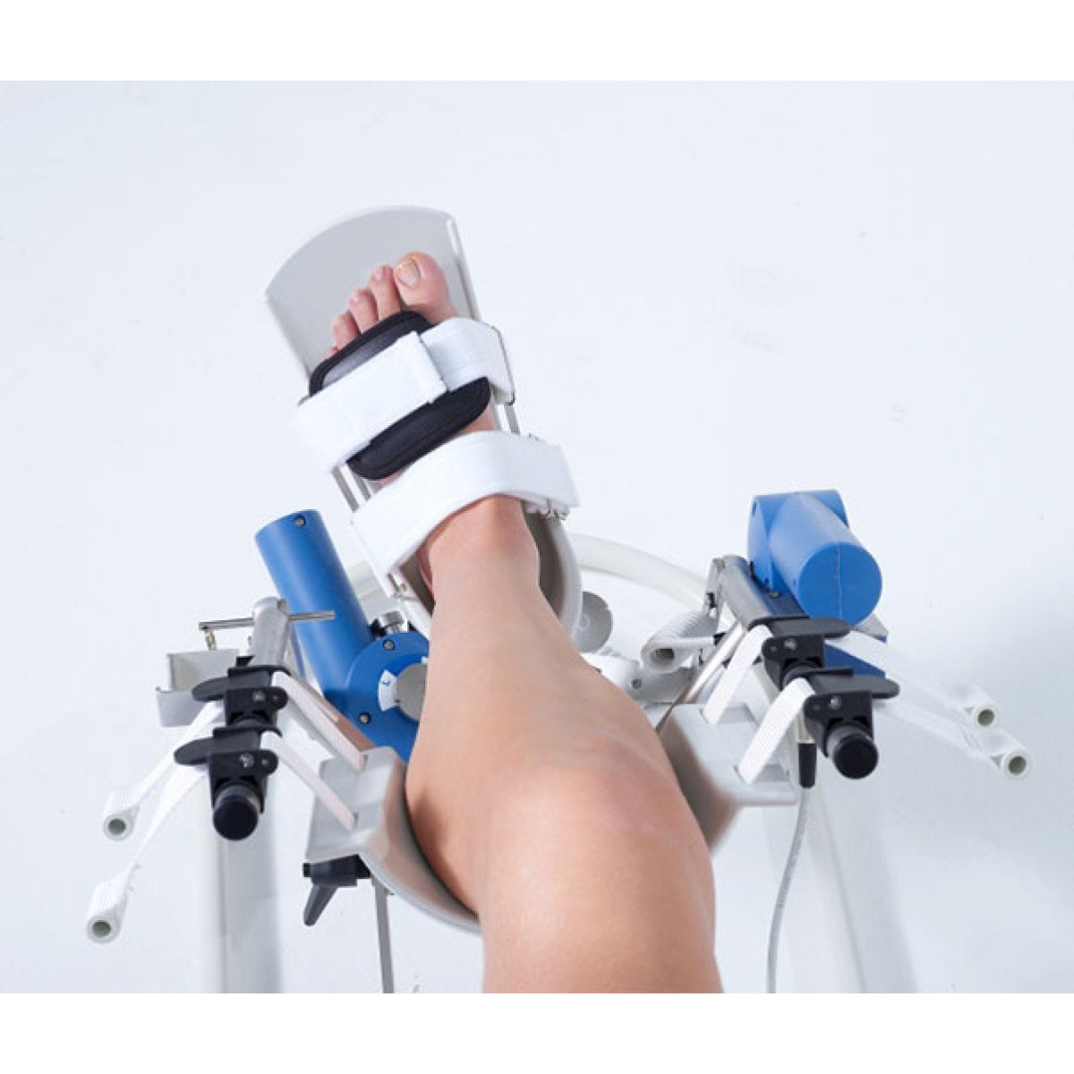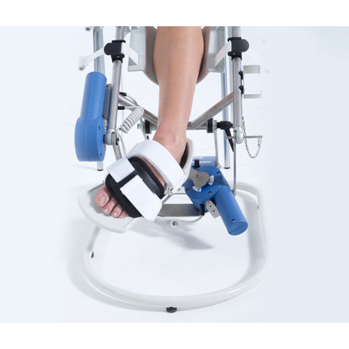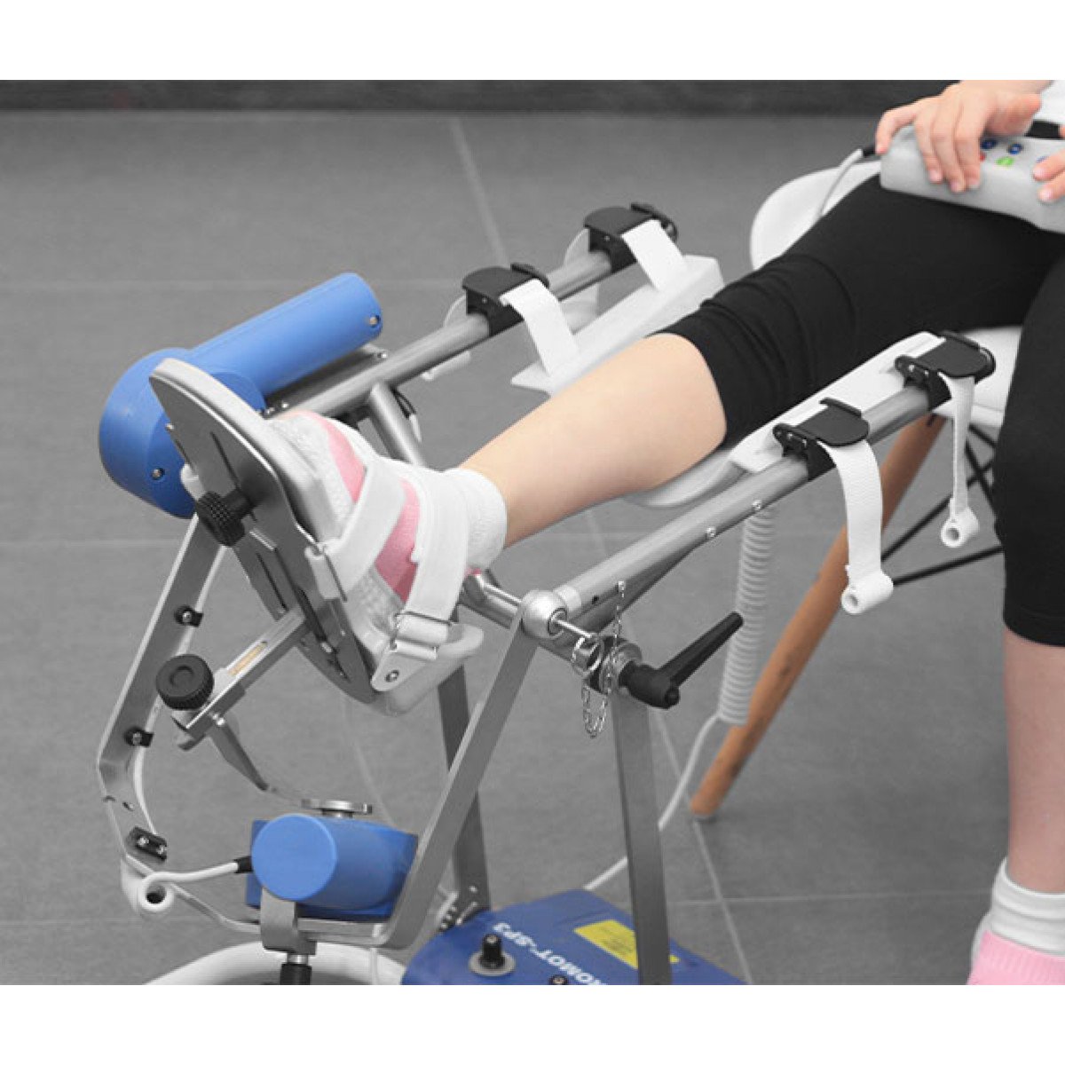Artromot-SP3 оснащён специальной системой, позволяющей настраивать высоту и положение подставки в зависимости от того, находится ли пациент в положении лёжа или сидя. Одним из ключевых аспектов работы Artromot-SP3 является точное совмещение оси вращения двигателя с осью вращения голеностопного сустава пациента. Такие настройки помогают минимизировать дискомфорт и риск травм при проведении сеансов. Устройство подходит для разработки как правого, так и левого голеностопного сустава. Тренажёр оснащён пультом управления, который позволяет индивидуально настраивать режимы работы устройства с учётом анатомических особенностей каждого пациента.