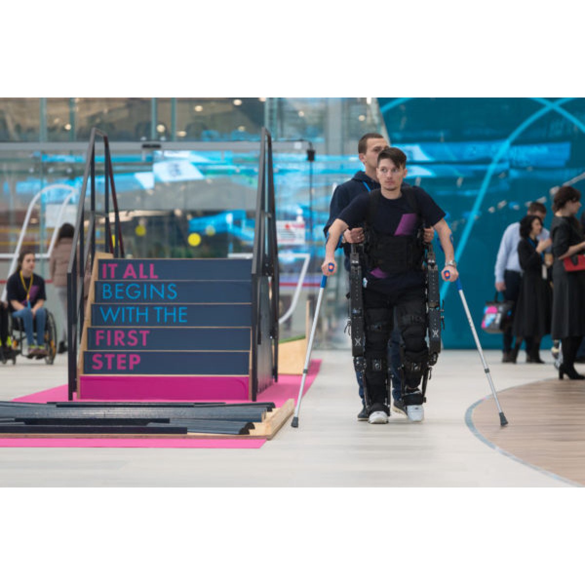 - Управление с пульта на костыле, с планшета сопровождающего или врача, со страховочных ручек сопровождающего